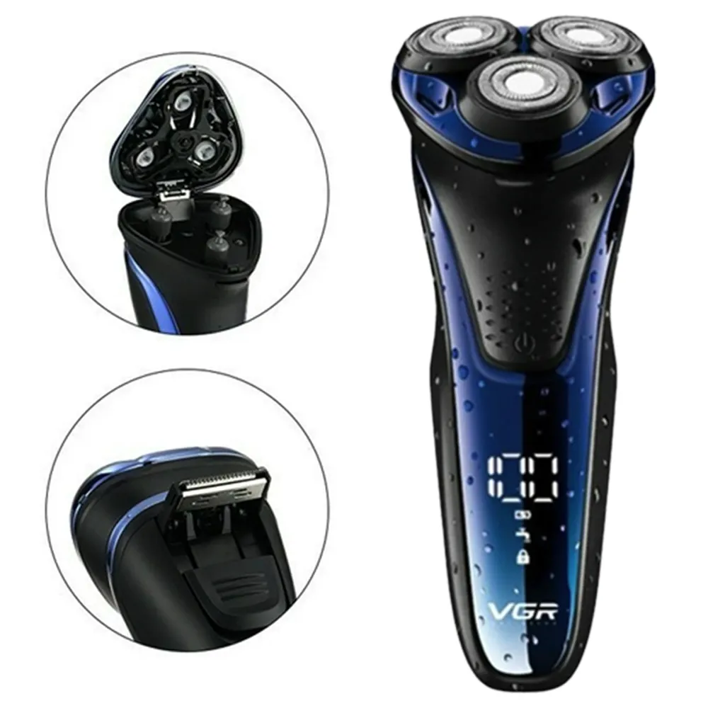 Водонепроницаемая электробритва с откидным триммером VGR V-306. Подходит для влажного и сухого бритья.