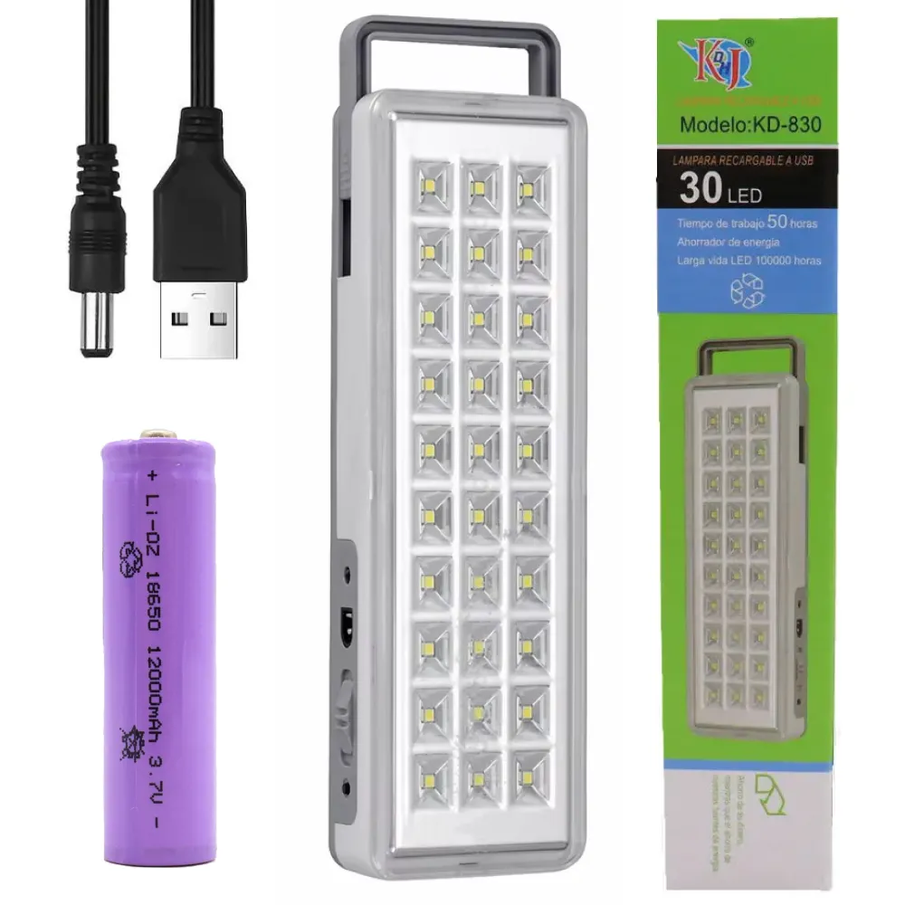 Аккумуляторный светильник-фонарь до 8 часов, 30 LED, USB-зарядка, KD-830 / Аварийная LED лампа