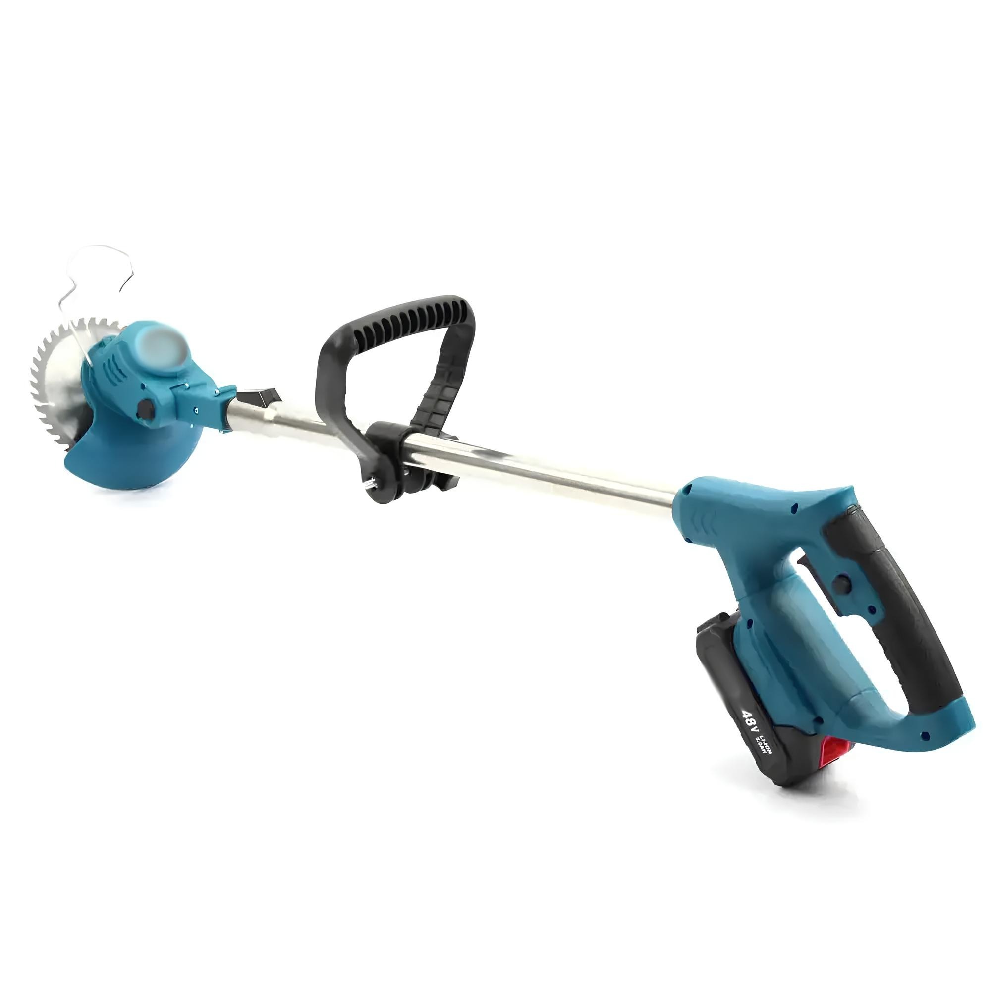 Газонокосилка электрическая оснащена ножом с широкой зоной скашивания, что обеспечивает точный и аккуратный срез. Электрокоса работает от литий-ионного аккумулятора с высокой ёмкостью, позволяя эффективно справляться с травой и мелкими кустарниками. Триммер для травы обладает высокой частотой вращения, а удобная D-образная рукоятка улучшает контроль и делает использование комфортным.