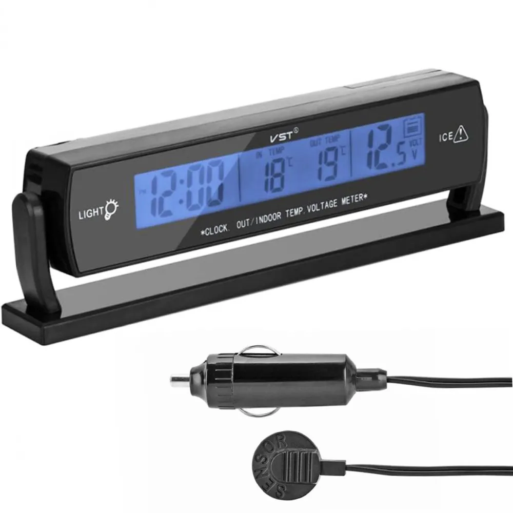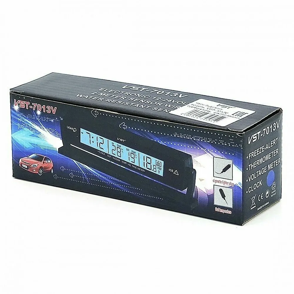 Автомобильные часы VST-7013V – это многофункциональное устройство, которое обеспечивает не только точное время, но и мониторинг важных параметров вашего автомобиля. Оснащенные ярким и четким дисплеем, эти электронные часы легко читаются в любое время суток. Датчик температуры отображает как внутреннюю, так и внешнюю температуру, позволяя вам всегда быть в курсе погодных условий и состояния салона.