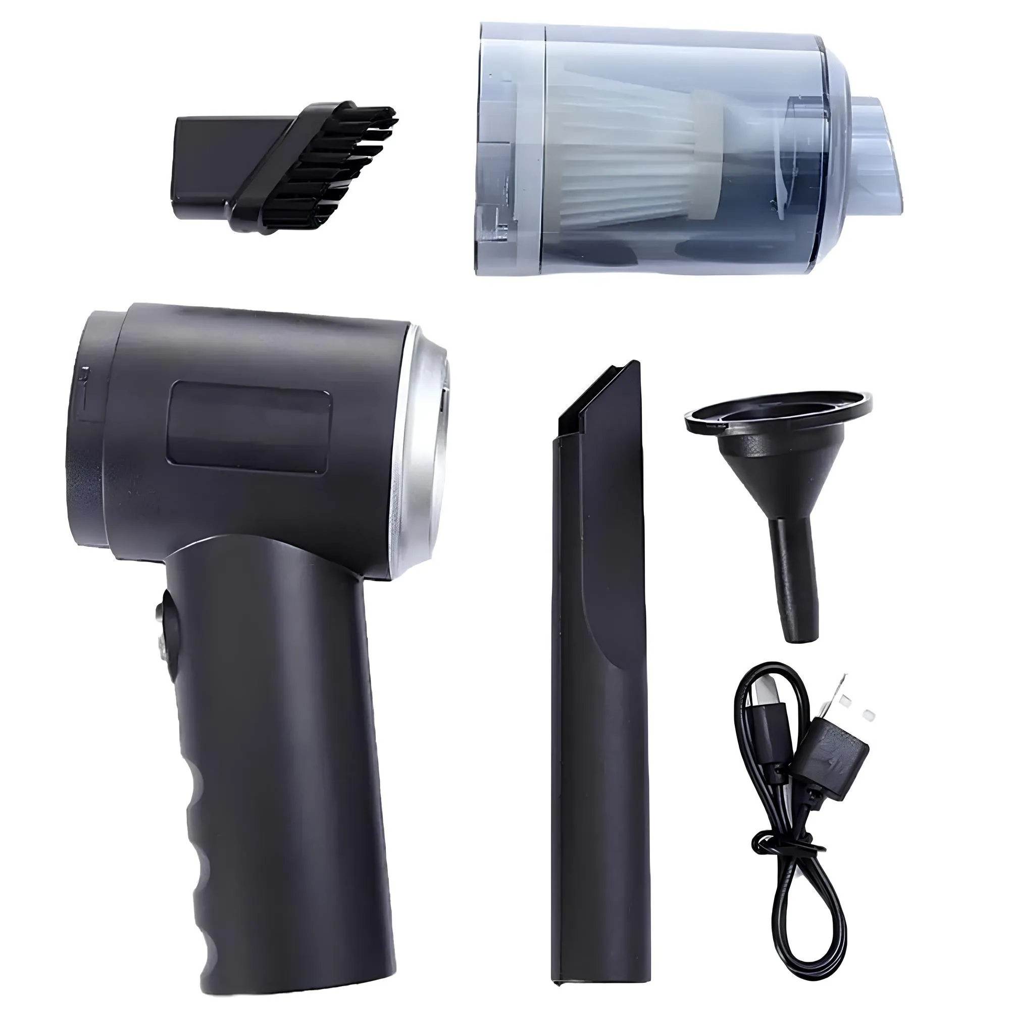 Пылесос ручной — это универсальное устройство, которое поможет поддерживать чистоту как в машине, так и дома. Помимо функции пылесоса, он может работать в режиме воздуходувки и вакуумного компрессора. Благодаря зарядке через USB ручной пылесос можно подключить к любому автомобильному источнику питания, что делает прибор удобным и всегда готовым к работе.