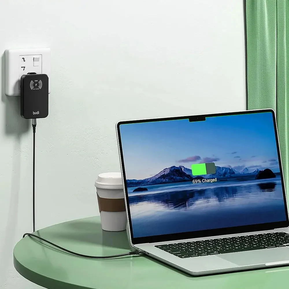 Эта беспроводная зарядка оснащена двумя разъемами Type-C с поддержкой Power Delivery для быстрой зарядки, а также разъемом USB QC 3.0 для подзарядки устройств, поддерживающих этот стандарт. Зарядка для айфона с технологией MagSafe обеспечивает надежное магнитное крепление для вашего телефона во время зарядки.