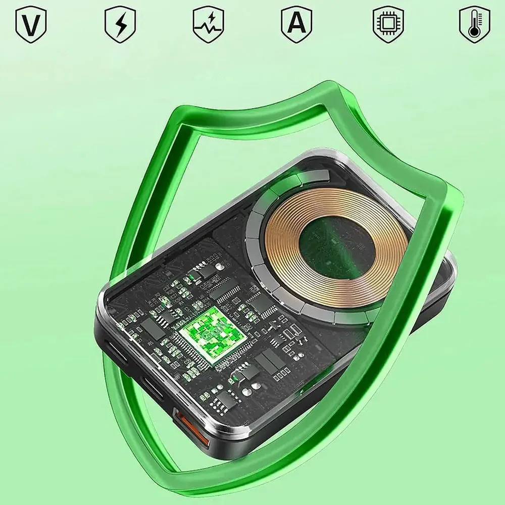 Эта зарядка телефона сочетает в себе несколько технологий быстрой зарядки и беспроводное подключение, обеспечивая удобство и безопасность для ваших устройств.