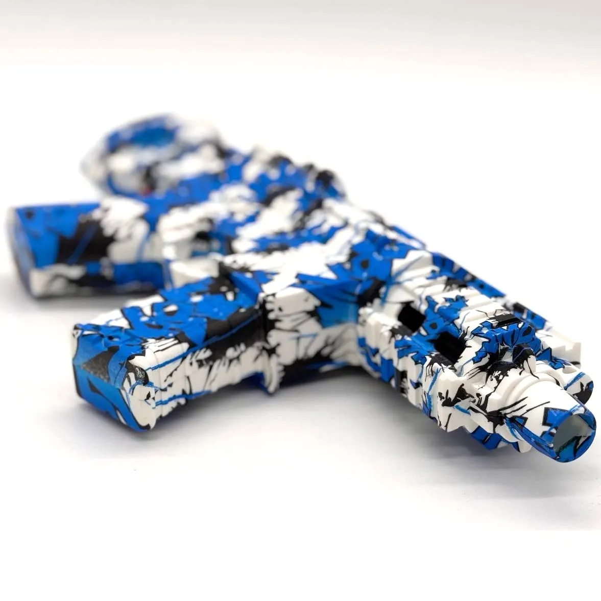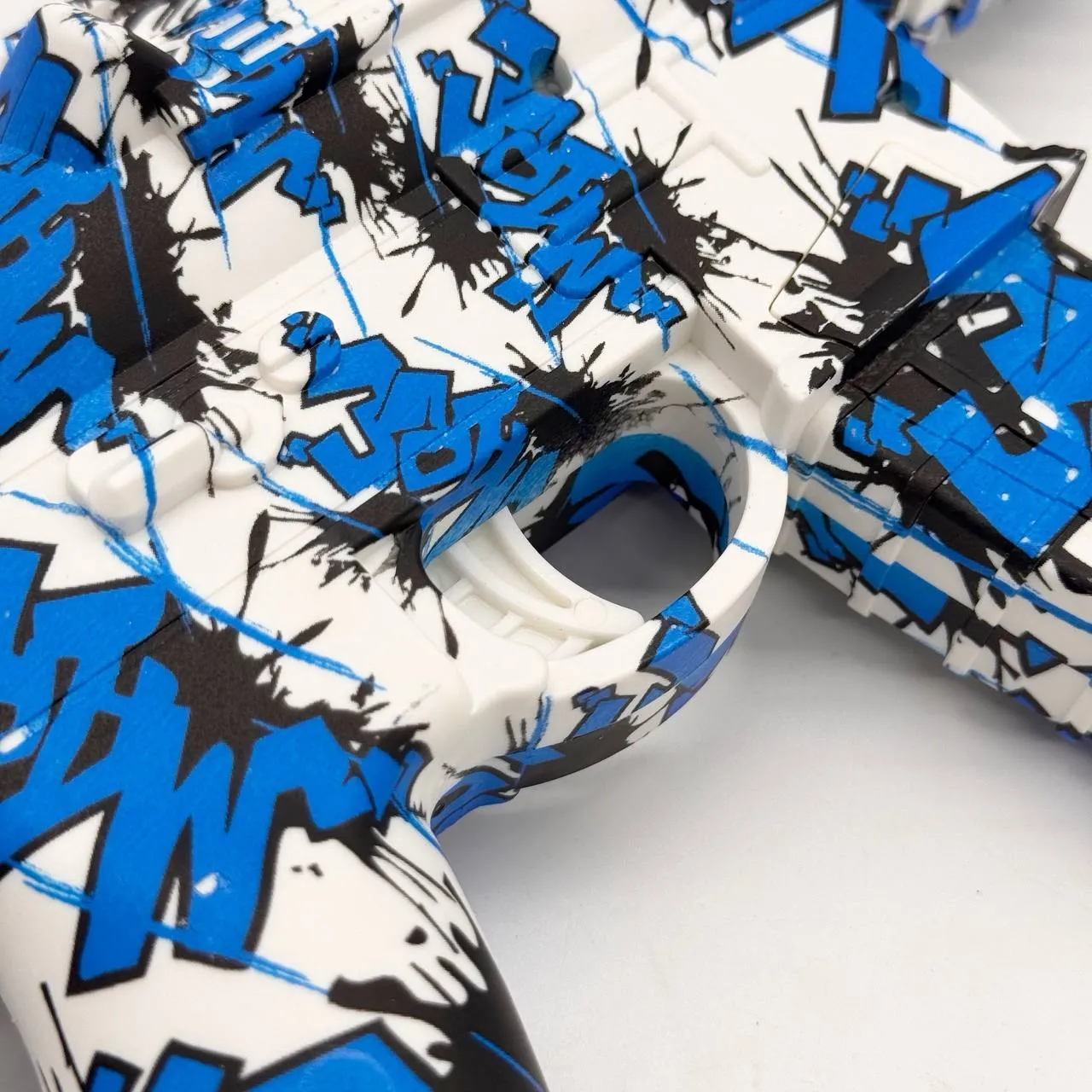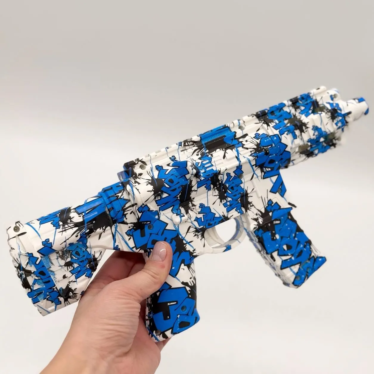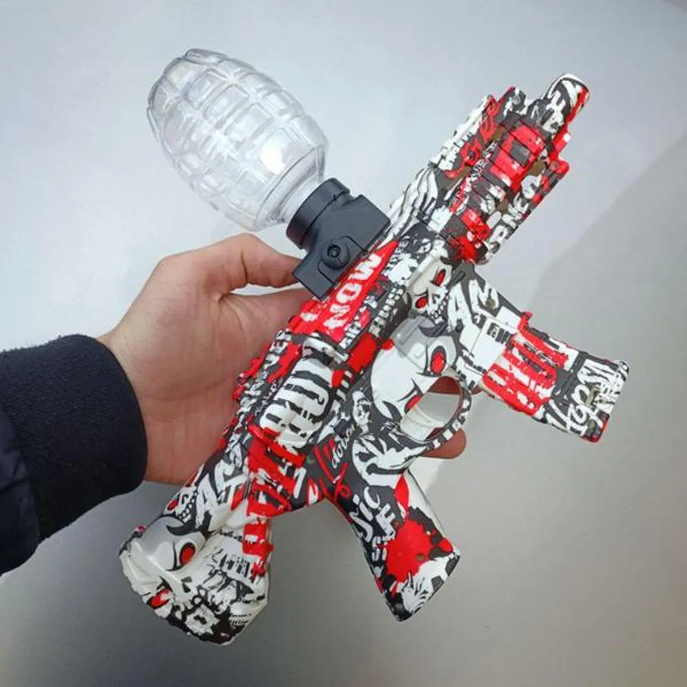 Игрушка работает от аккумулятора, который заряжается через USB-кабель (входит в комплект). Это позволяет использовать её многократно без необходимости покупать батарейки. Полностью заряженное устройство обеспечивает длительное время игры, делая процесс максимально комфортным и увлекательным. В качестве игровых элементов используются специальные мягкие гелевые шарики (орбизы), которые нужно предварительно замочить в воде