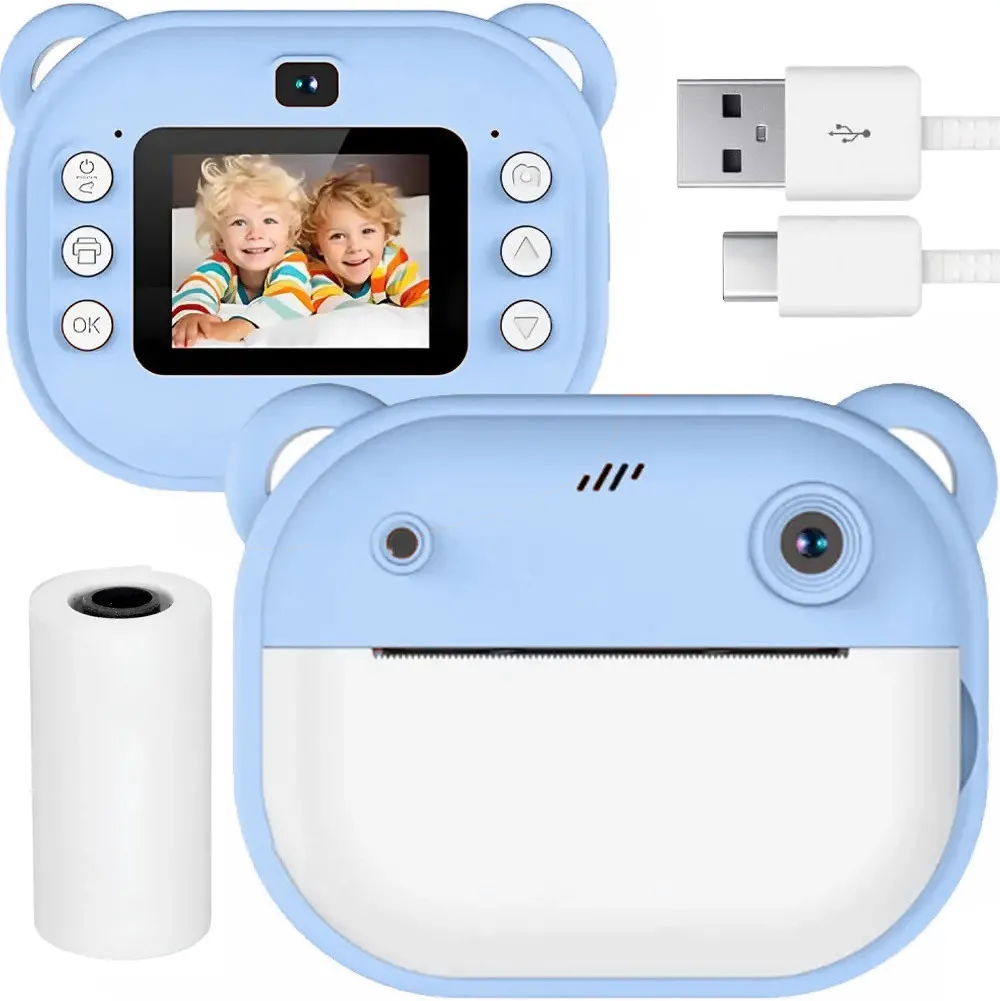 Детский фотоаппарат мгновенной печати с дисплеем + Рулон термобумаги, Синий / Цифровой фотоаппарат для детей