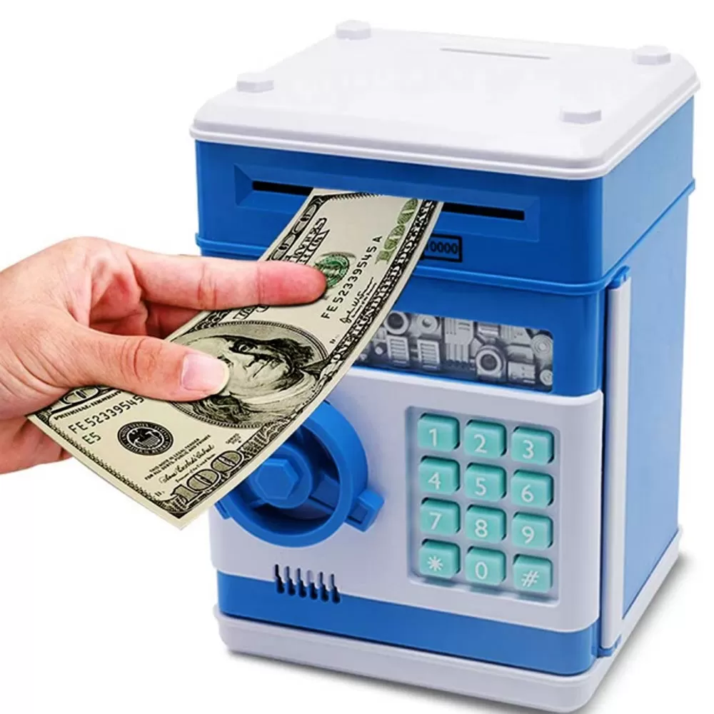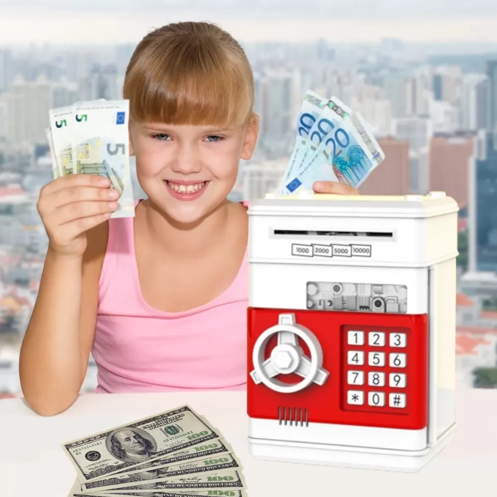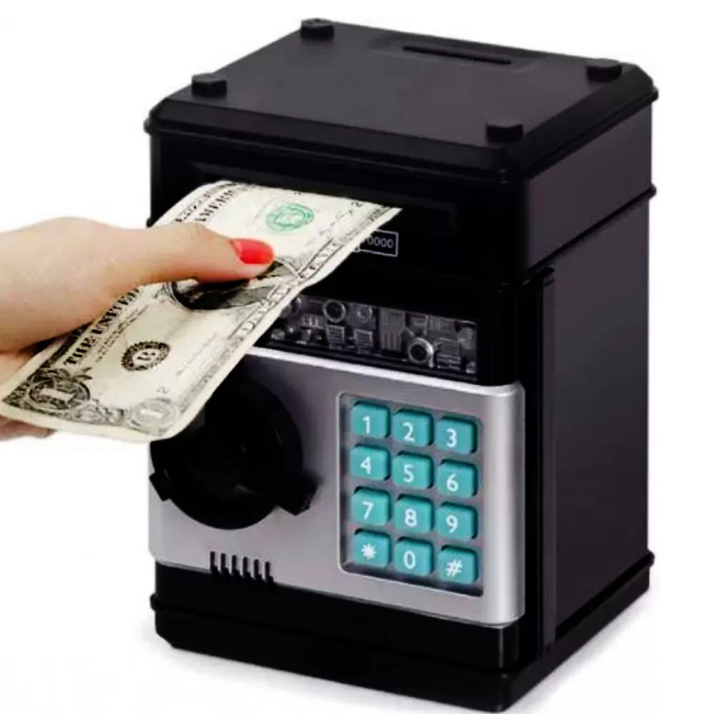 Деньги любят счет и тишину. А что лучше всего будет хранить тайну ваших сбережений? Конечно же сейф! Эта электронная копилка сейф станет прекрасным подарком любому человеку, который хочет немного поднакопить и оставить это в секрете. Данная копилка-сейф оснащена специальным механизмом, который срабатывает при поднесении купюры к купюроприемнику и затягивает ее внутрь, помещая в основное отделение копилки.
