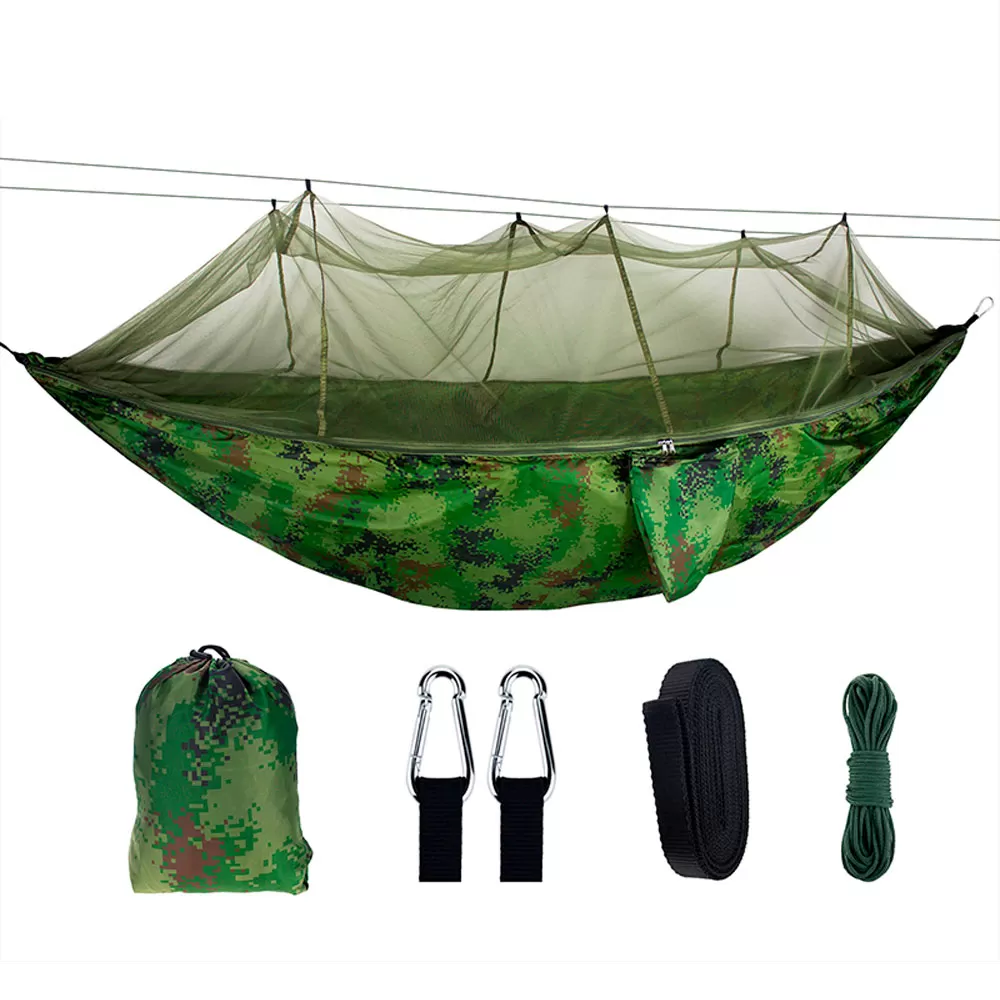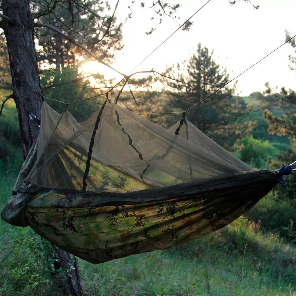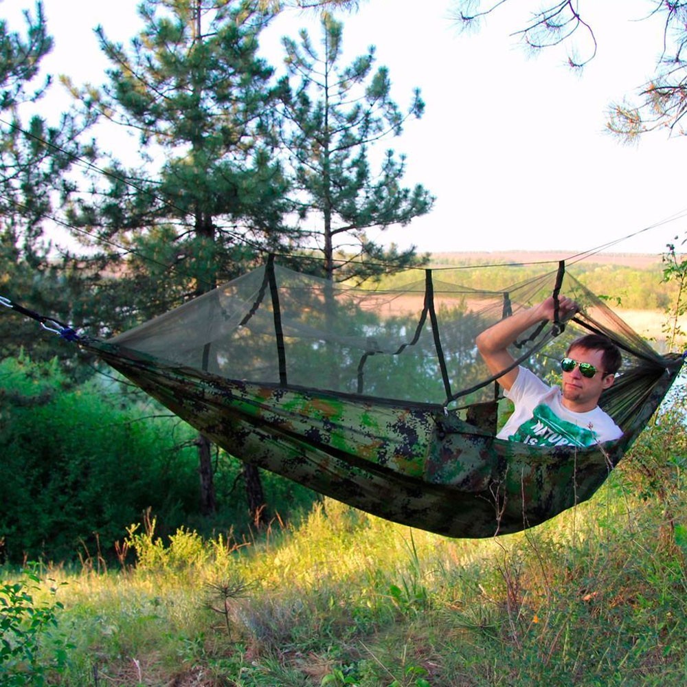 Гамак производный с москитной сеткой надежно оградит вас от насекомых и их укусов. Может использоваться как палатка, коврик для пикника, пляжный коврик, гамак, брезент для кемпинга и т.д. Изготовлен из полиэстера высокой плотности 210D Oxford ripstop. Водостойкий и износостойкий, устойчивый к разрыву, многоразовый, хороший компаньон для путешествий.