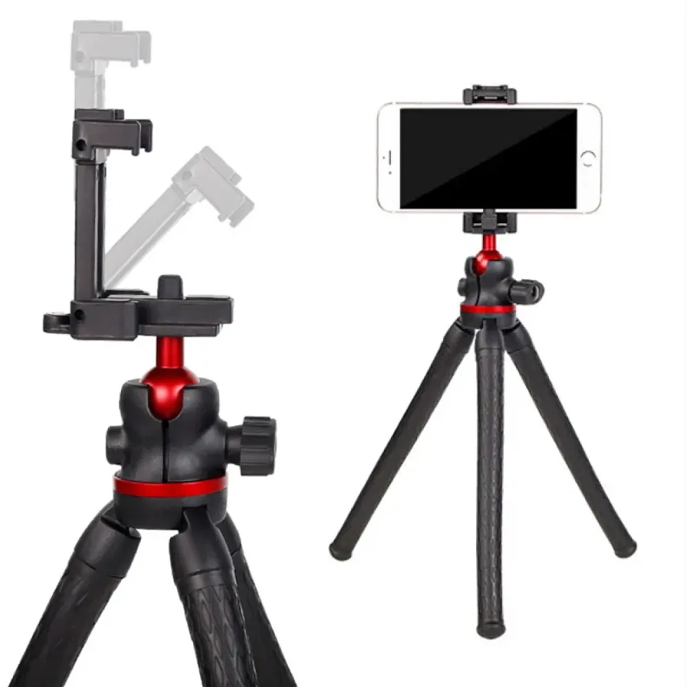 Гибкий штатив “Осьминог” с держателем для телефона представляет собой универсальное и компактное решение для всех, кто ищет надежную поддержку для своего смартфона при создании фотографий и видео. Этот мини тринога обладает уникальной конструкцией, состоящей из гибких ножек, которые можно легко изогнуть и прикрепить к различным поверхностям, что делает его идеальным для съемки на природе или вне дома.