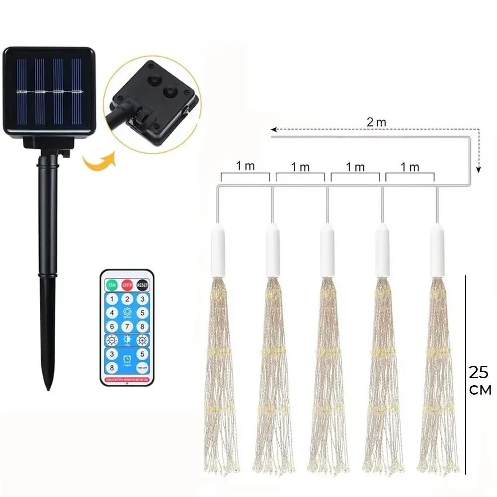 Преобразите ваш сад, балкон или террасу с помощью светодиодной гирлянды на солнечных батареях! Теплый белый свет создаст уютную и праздничную атмосферу в любое время года, а питание от солнечной энергии сделает использование абсолютно бесплатным и экологичным. Удобное управление с пульта позволяет легко переключать режимы освещения, а надежное крепление на крючках обеспечивает быструю и простую установку без лишних хлопот. Гирлянда автоматически включается в темное время суток, создавая магию без вашего участия.