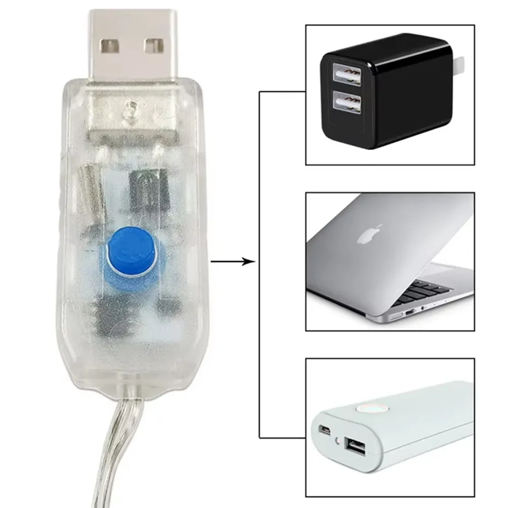 Создайте романтическую и волшебную атмосферу в вашем доме с помощью этой гирлянды! Пульт дистанционного управления позволяет легко регулировать яркость и выбирать режимы свечения. Удобное USB-питание обеспечивает простоту в использовании. Светодиоды отличаются долгим сроком службы и низким энергопотреблением, что делает гирлянду экономичным и надежным выбором для вашего интерьера.