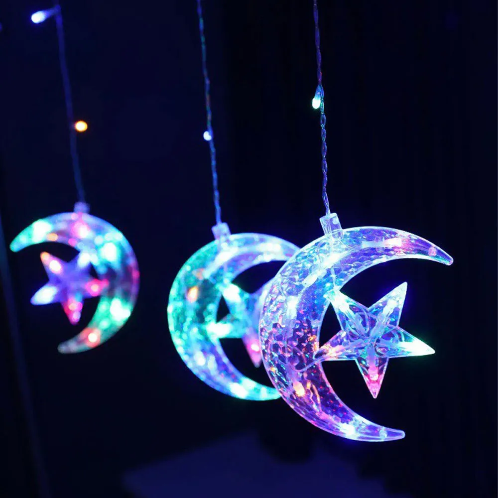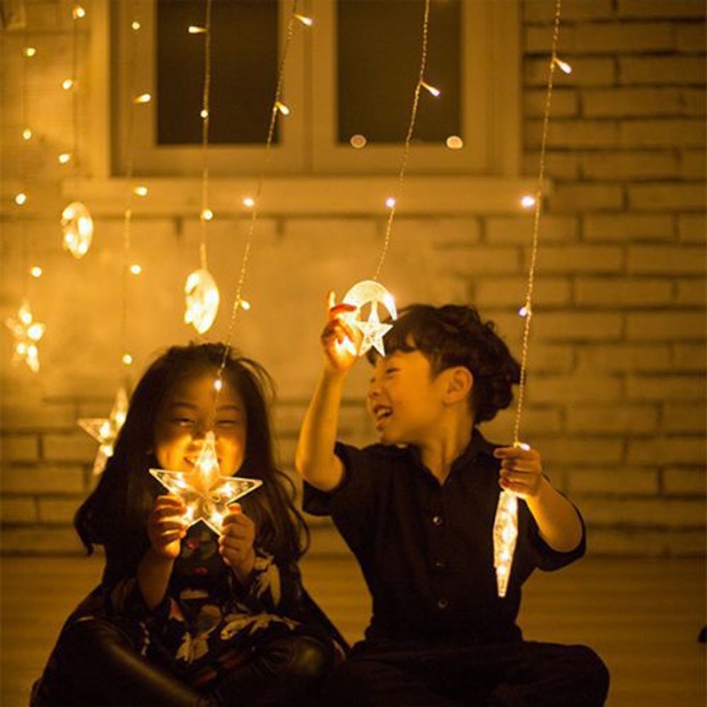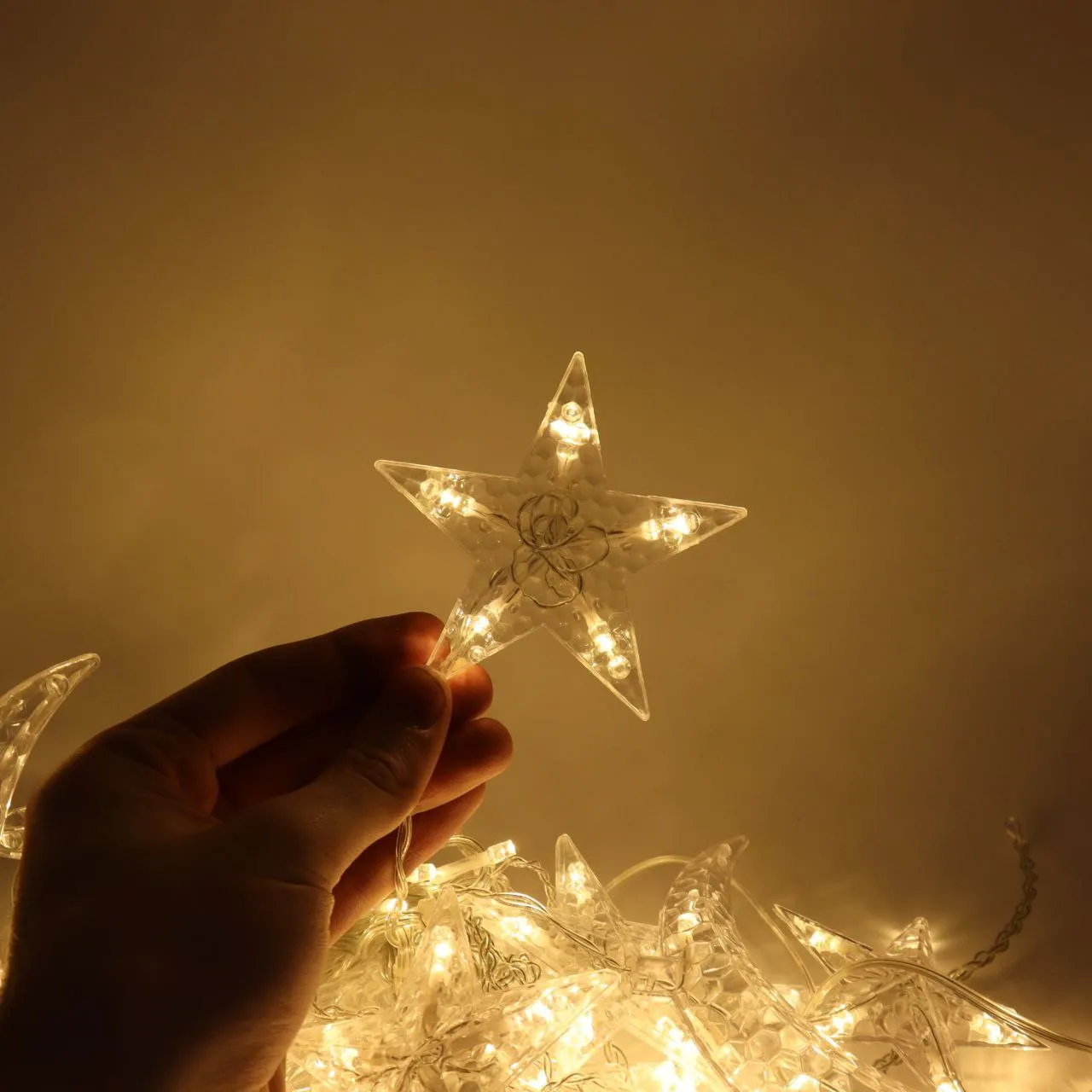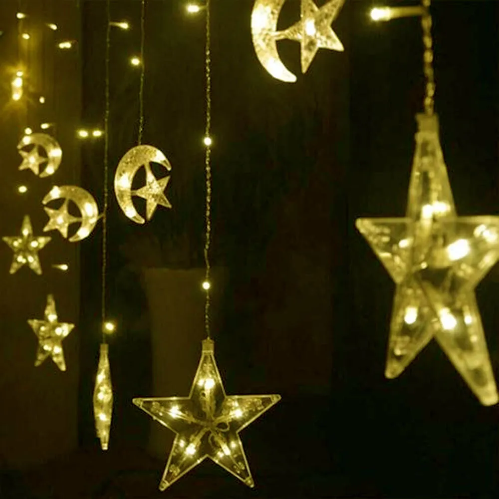 Гирлянда штора Звезды и Луна от сети (2,5х0,6м) 138 LED / Светодиодная гирлянда новогодняя / Лед гирлянда на окно
