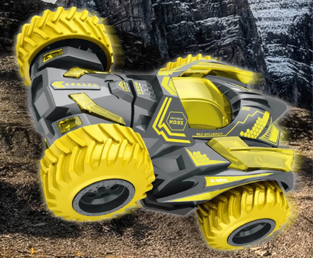 Яркая желтая машинка-перевертыш: захватывающие трюки и веселые гонки для детей!