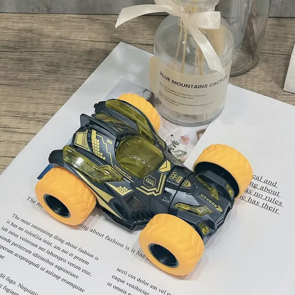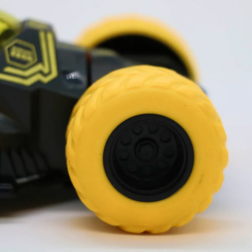Яркая желтая машинка-перевертыш: захватывающие трюки и веселые гонки для детей!
