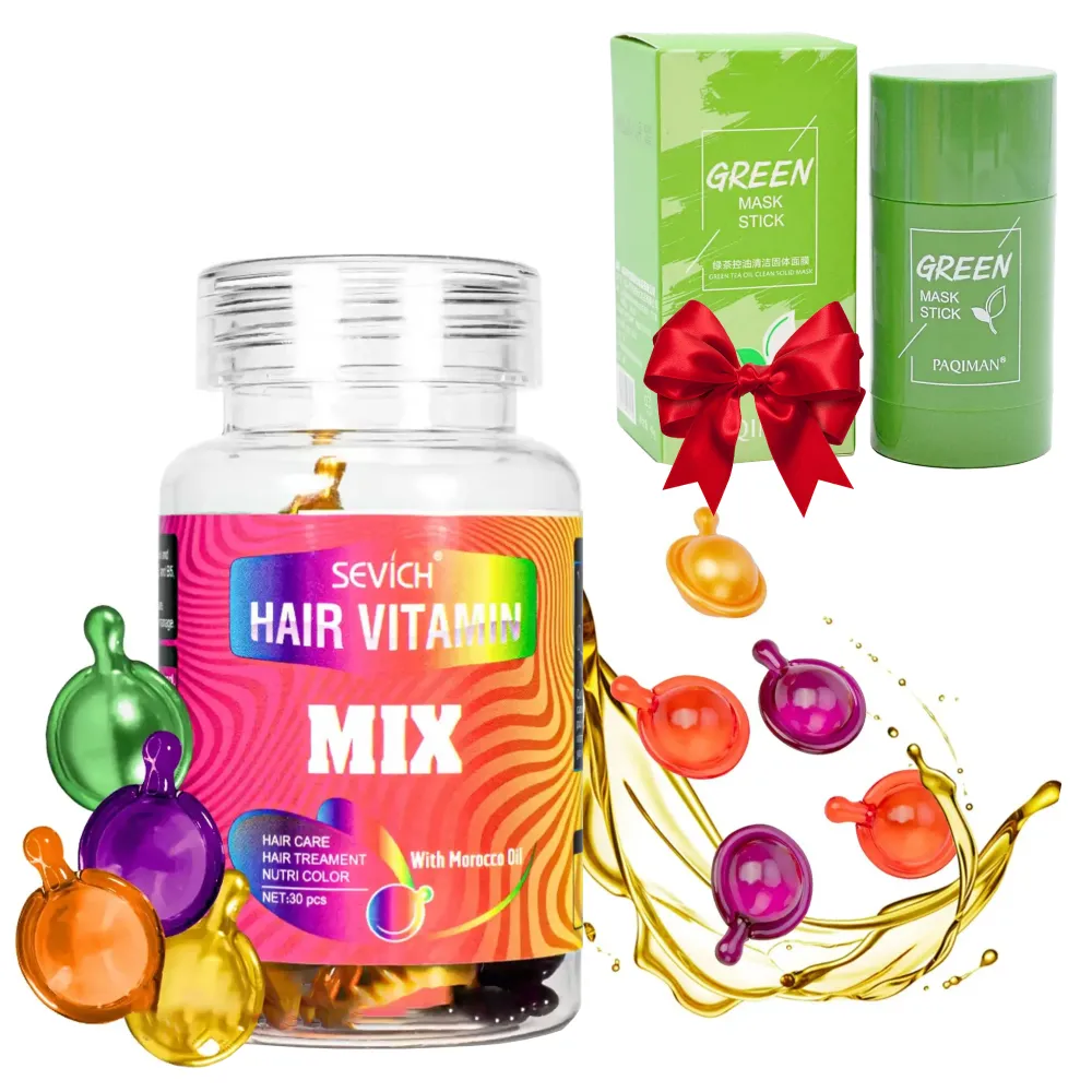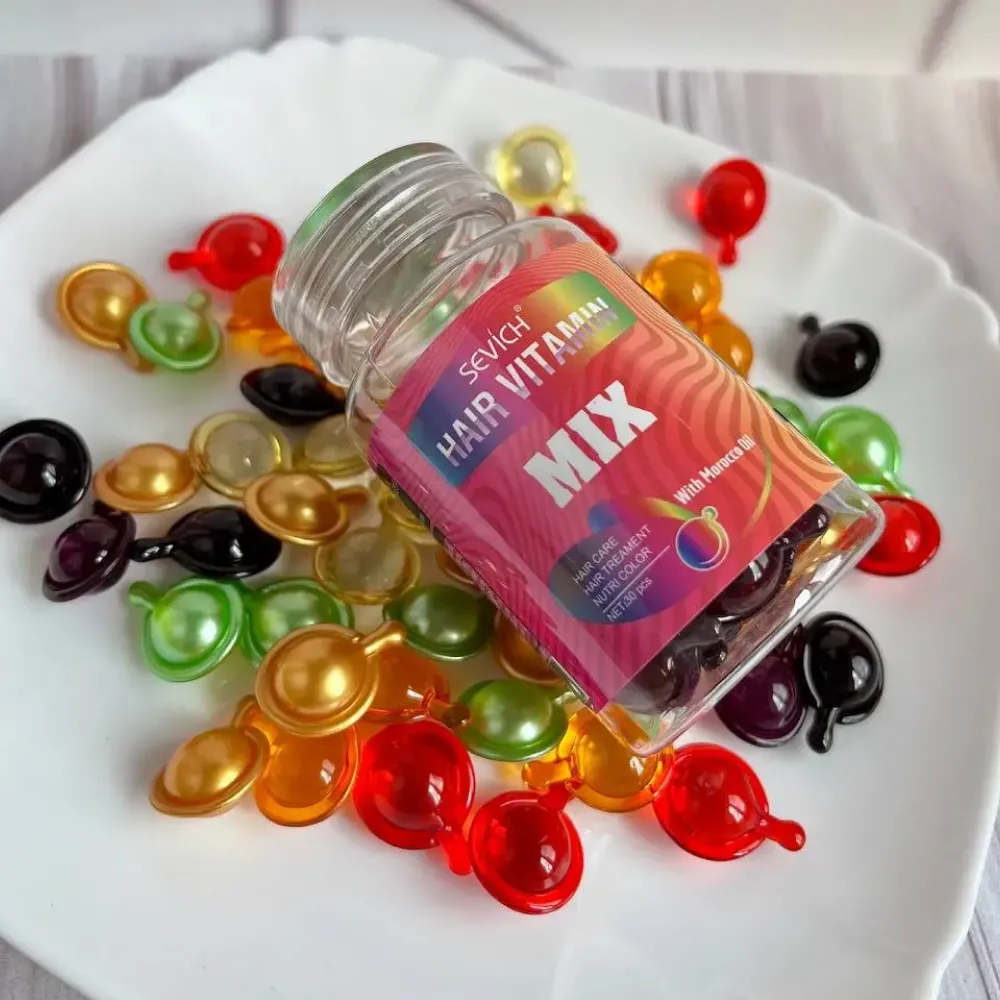 Капсулы Sevich с марокканским маслом богаты питательными веществами, которые придают волосам мягкость, сияние и здоровый вид, а также приятный аромат. В наборе содержатся различные виды витаминов, в том числе те, которые способствуют восстановлению поврежденных волос, улучшению блеска, приданию шелковистости и сохранению яркости цвета. Каждый вид витаминов обогащен уникальным набором полезных компонентов.