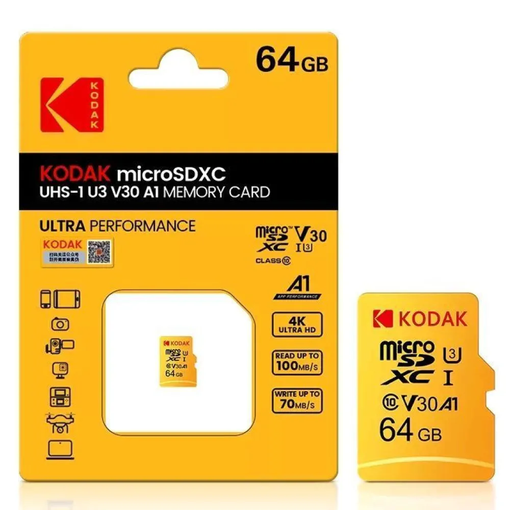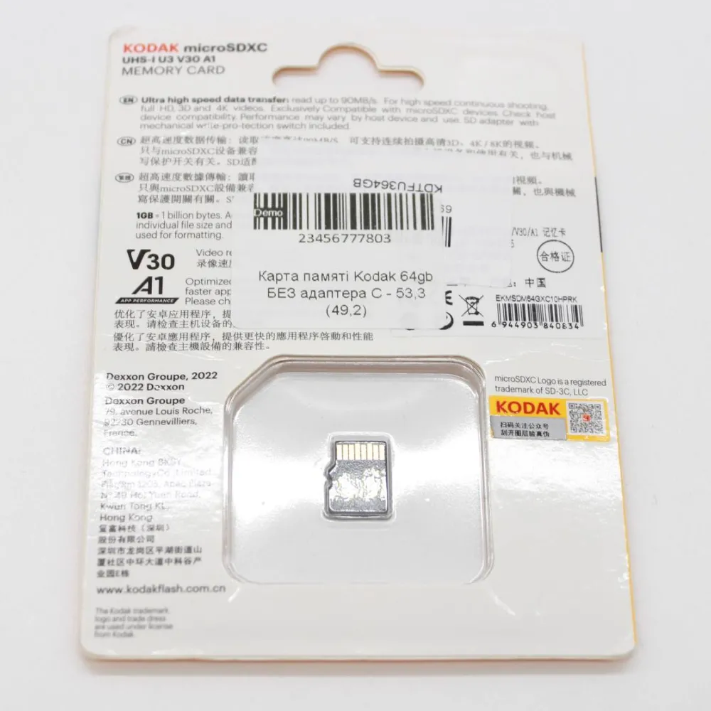 Карта памяти Kodak microSD объемом 64 ГБ представляет собой надежное хранилище данных с высокой производительностью. Она обеспечивает достаточную емкость для сохранения фотографий, видео и других данных на современных портативных устройствах. Соответствует стандартам Class 10, что гарантирует высокую скорость чтения и записи, что особенно важно для плавного воспроизведения мультимедийного контента.