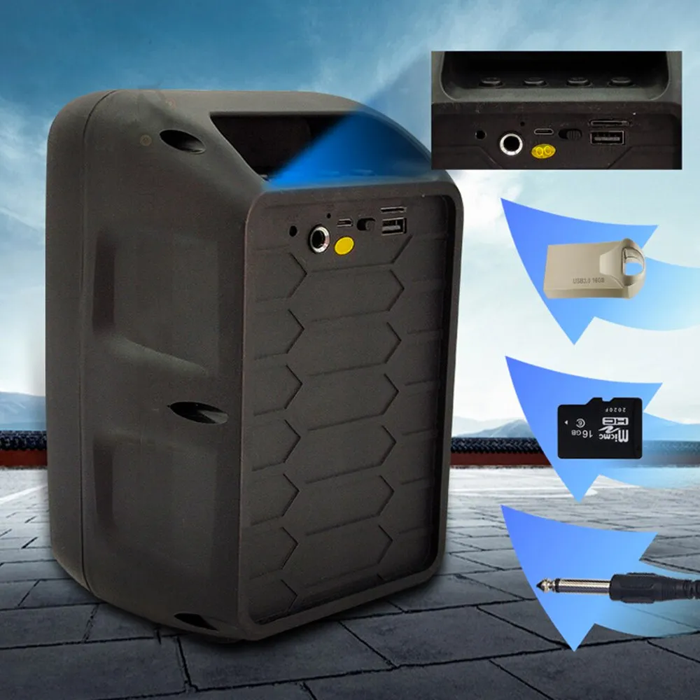 Кроме подключения по Bluetooth, ESS-105 также имеет возможность воспроизведения музыки через AUX-разъем, слоты для карт памяти microSD/TF и USB-накопители. Благодаря встроенному FM-приемнику, вы сможете наслаждаться музыкой даже без наличия телефона или флешки. Яркая светодиодная подсветка динамика создаст праздничную атмосферу и добавит красок в любое мероприятие.