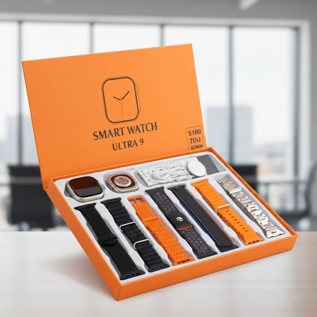 Комплект смарт-часов с расширенной функциональностью создан для тех, кто ценит универсальность и стиль в одном устройстве. Надёжный корпус, яркий дисплей и современный дизайн делают модель удобной для повседневного использования дома, на работе или во время активного отдыха. Часы легко адаптируются под любой образ благодаря множеству ремешков, а беспроводная зарядка обеспечивает дополнительный комфорт.
