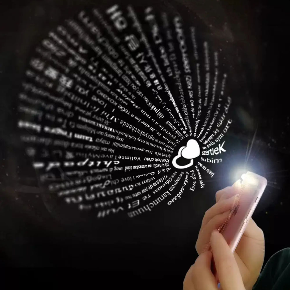 - Проекция фразы «Я тебя люблю» на 100 языках через камеру телефона или с помощью фонарика