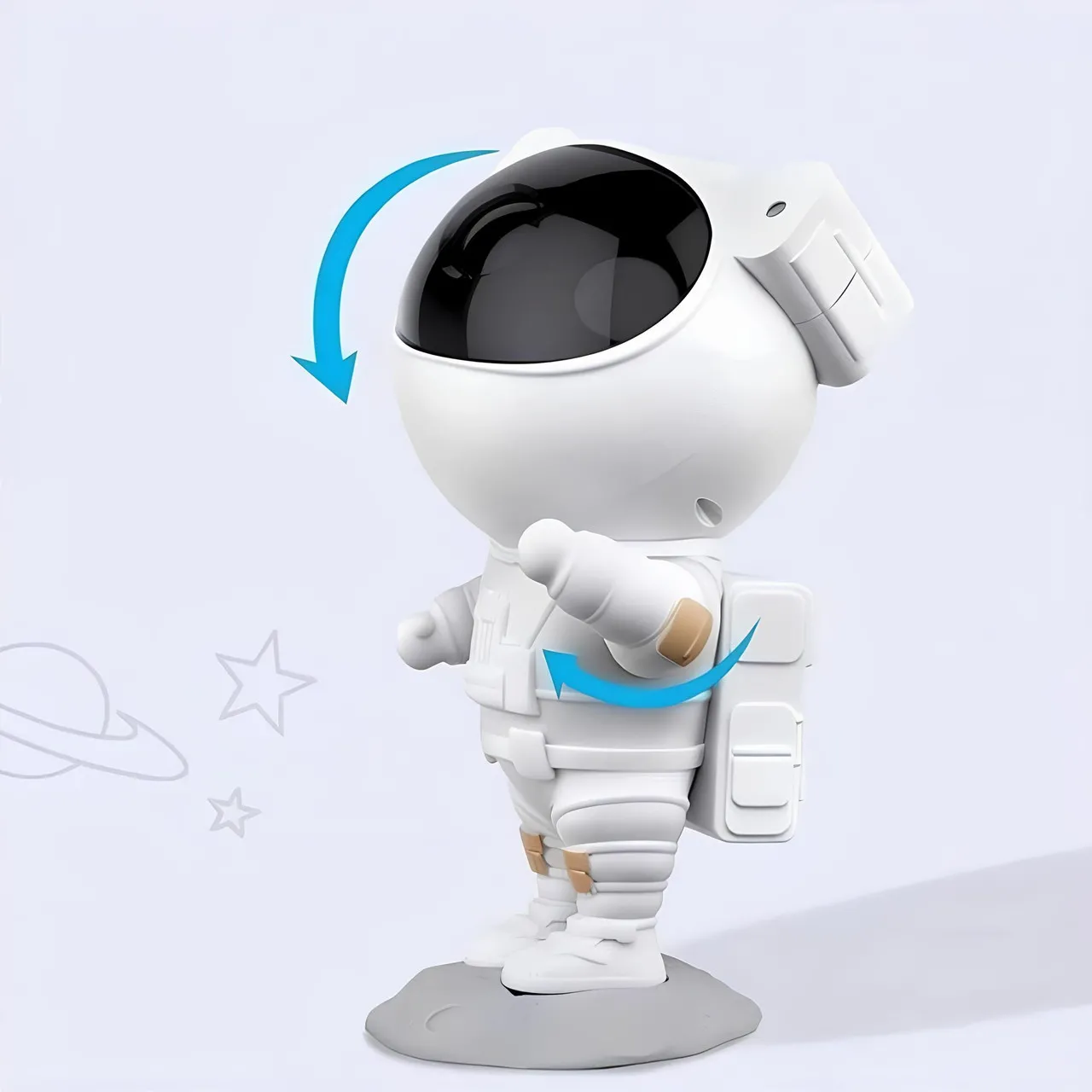 Астронавт-проектор создает магическую атмосферу благодаря проекции звездного неба на стены и потолок. Этот стильный проектор ночничок оснащен современной лазерной технологией, которая превращает любую комнату в настоящее космическое пространство. Благодаря встроенному аккумулятору ночник работает без подключения к сети.