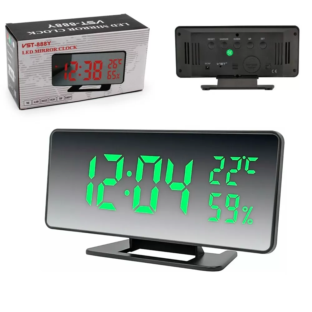 Часы настольные VST VST-888Y 7006 имеют интересный зеркальный дисплей. Светодиодная подсветка позволит даже в тёмное время суток правильно сориентироваться во времени, а настойчивый звонок будильника разбудит в нужное время. Оснащены функциями автоматического измерения температуры, автоматического уменьшения яркости свечения ночью.