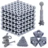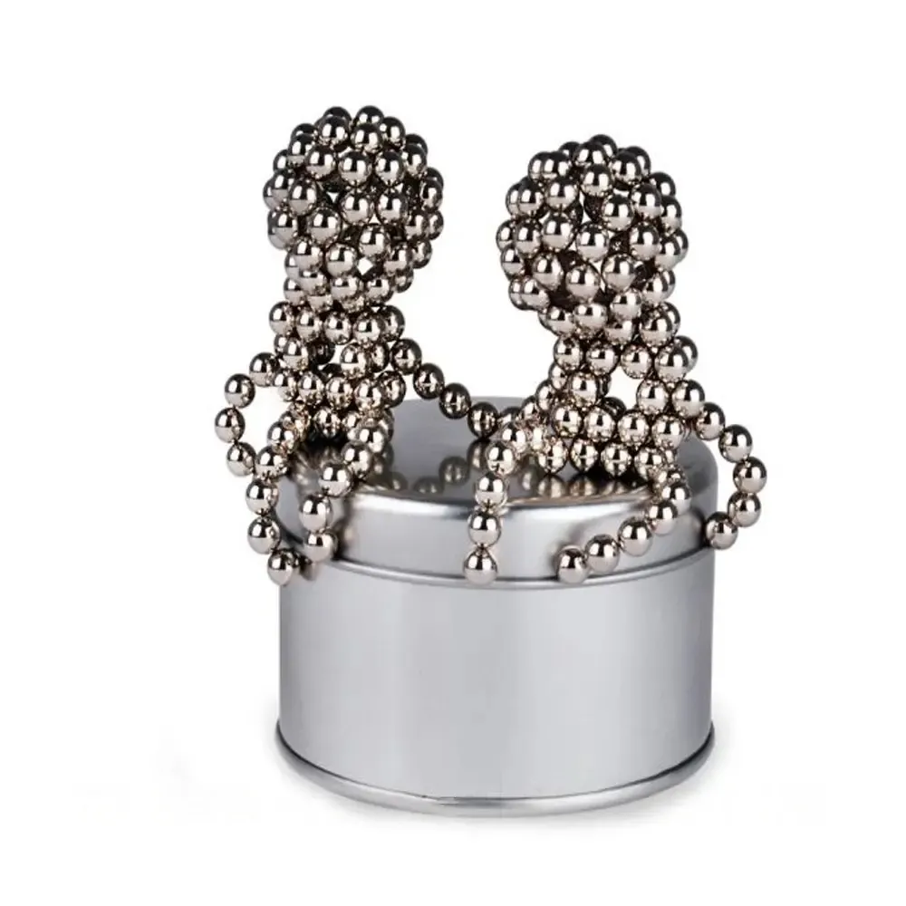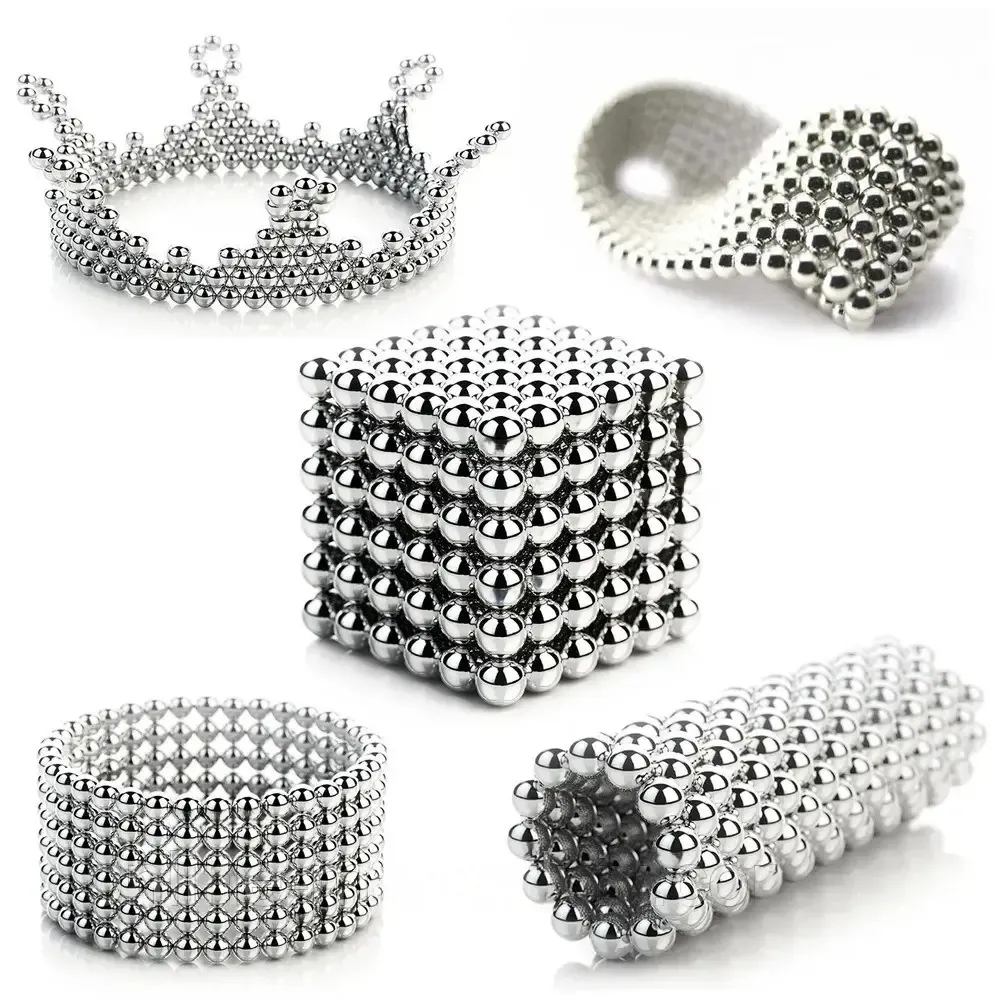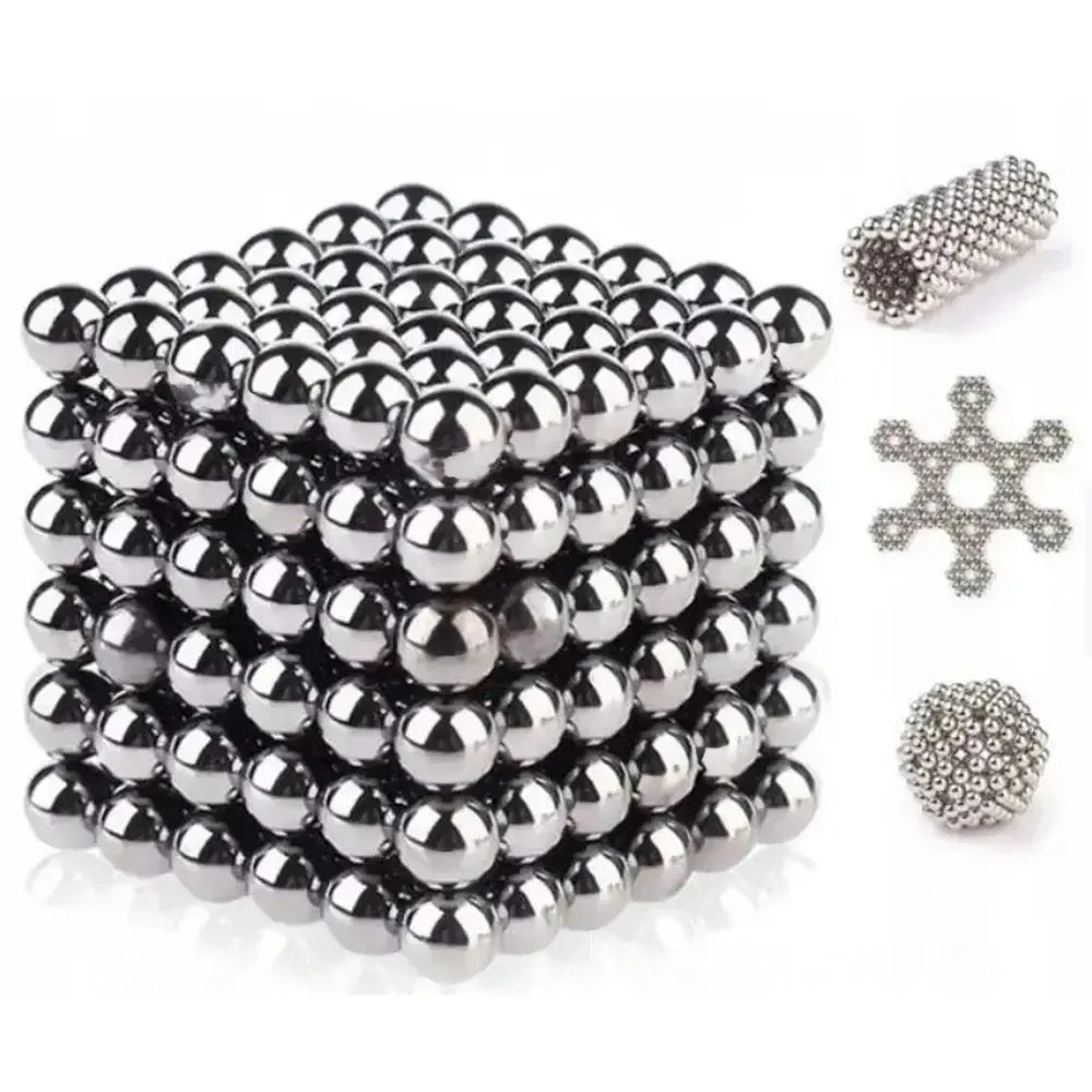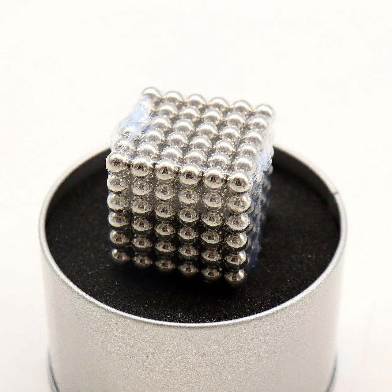 Неокуб состоит из 216-ти сильно намагниченных шариков из сплава Nd14Fe21B (неодим – редкоземельный металл с высокой и долговременной магнитной устойчивостью), с намагниченностью N38 и диаметром 5 мм. Из этих шариков можно создавать любые фигуры и узоры – от классических форм (куб, пирамида, шар) до сложных абстрактных композиций.