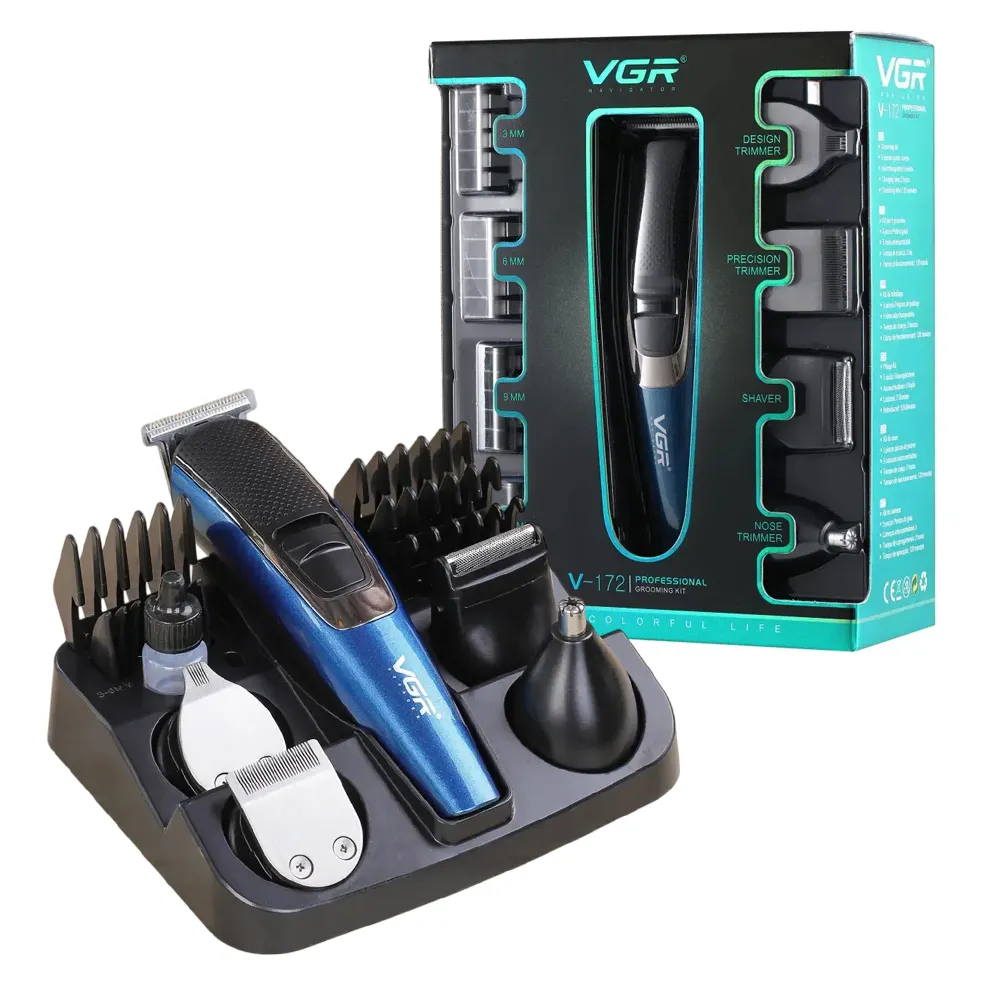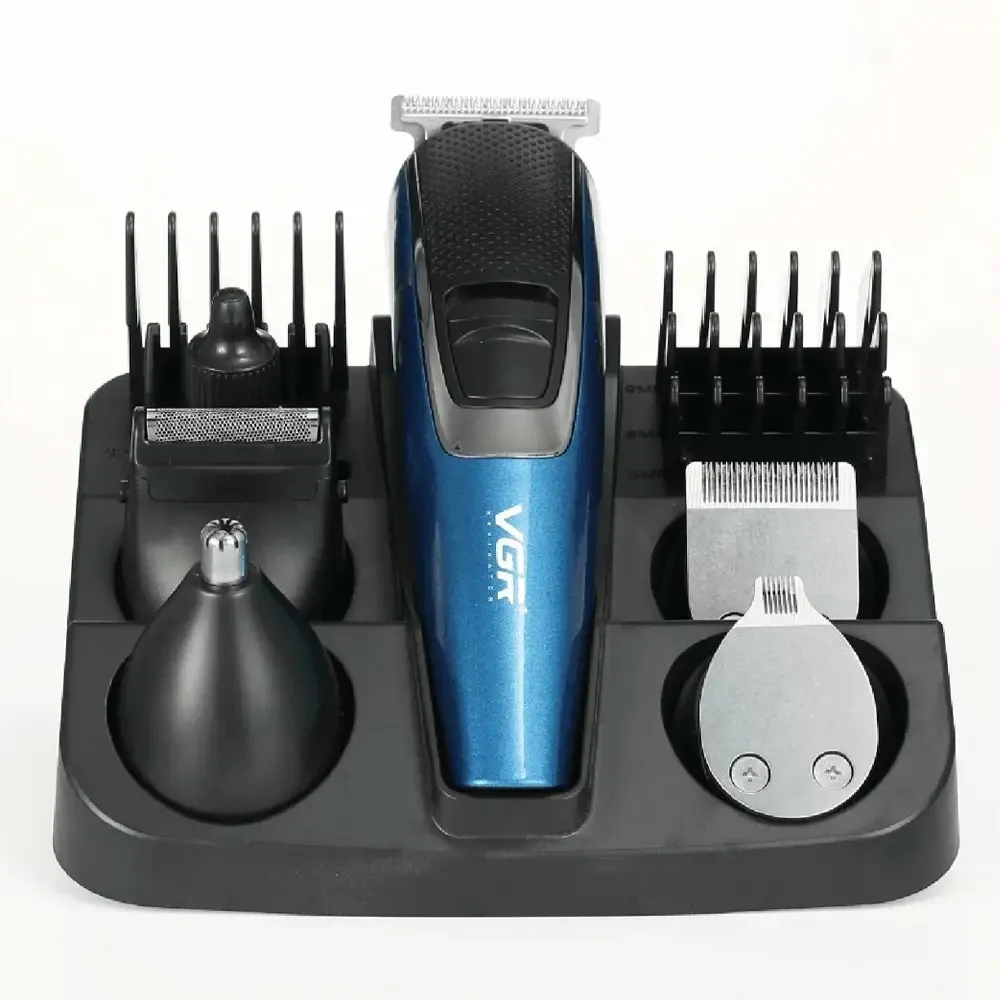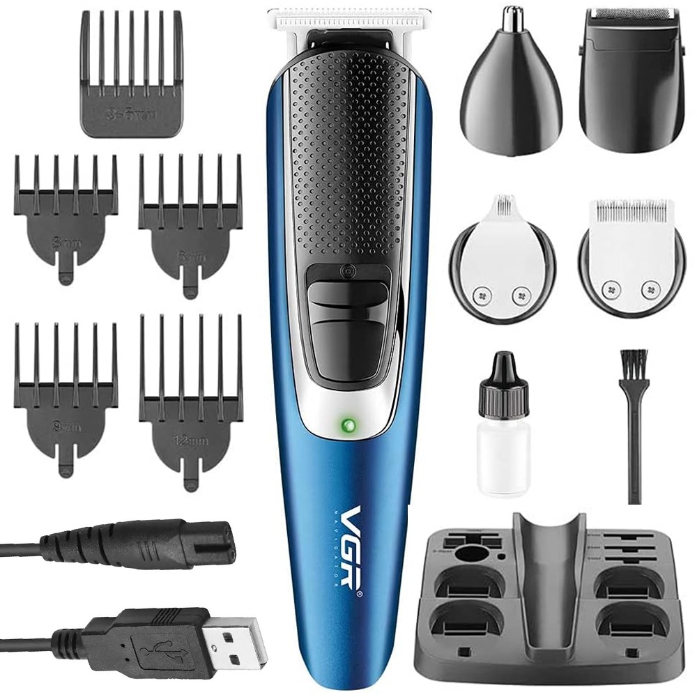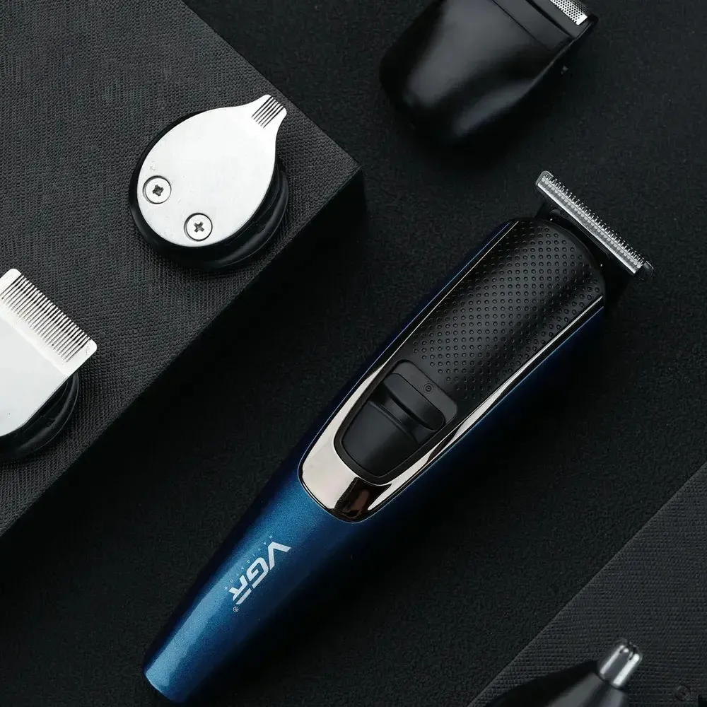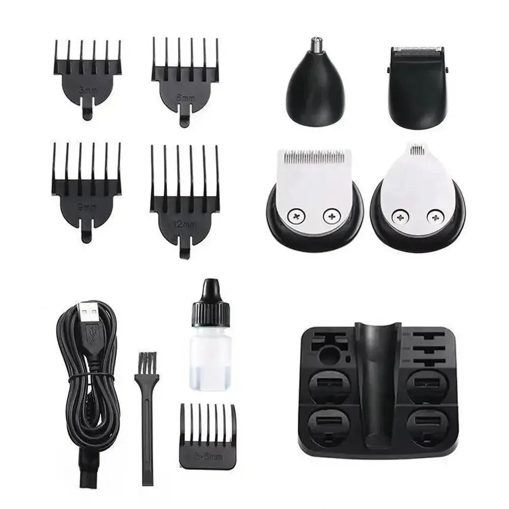 В наборе предусмотрены насадки для разной длины волос, триммеры для носа и точных деталей, сеточная бритва и другие аксессуары. Лезвия из нержавеющей стали обеспечивают долговечность, а встроенный аккумулятор с индикатором заряда делает использование простым и комфортным. Это идеальное решение, заменяющее несколько устройств одним компактным инструментом.