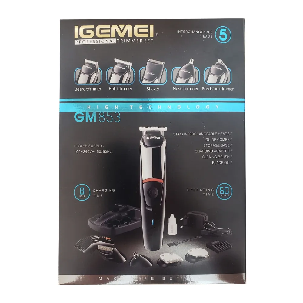 Машинка для стрижки волос беспроводная 5 в 1 Gemei GM 853 / Беспроводная машинка для волос