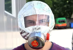 А его конструкция защитит не только органы дыхания, но и всю голову, включая уши и волосяную часть. Защитный противогаз в сложенном состоянии имеет размер примерно с апельсин, поэтому легко поместится и в сумке, и в бардачке авто.