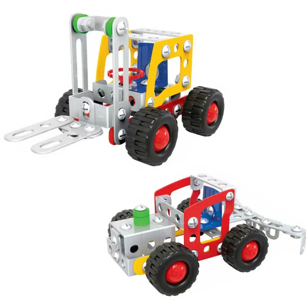 Конструктор изготовлен из качественного металла, что гарантирует его долговечность и устойчивость к износу. Все элементы легко соединяются между собой с помощью болтов и гаек, что делает процесс сборки безопасным и интересным. Подходит для детей от 6 лет, этот железный конструктор станет отличным подарком для юных любителей техники и конструирования!