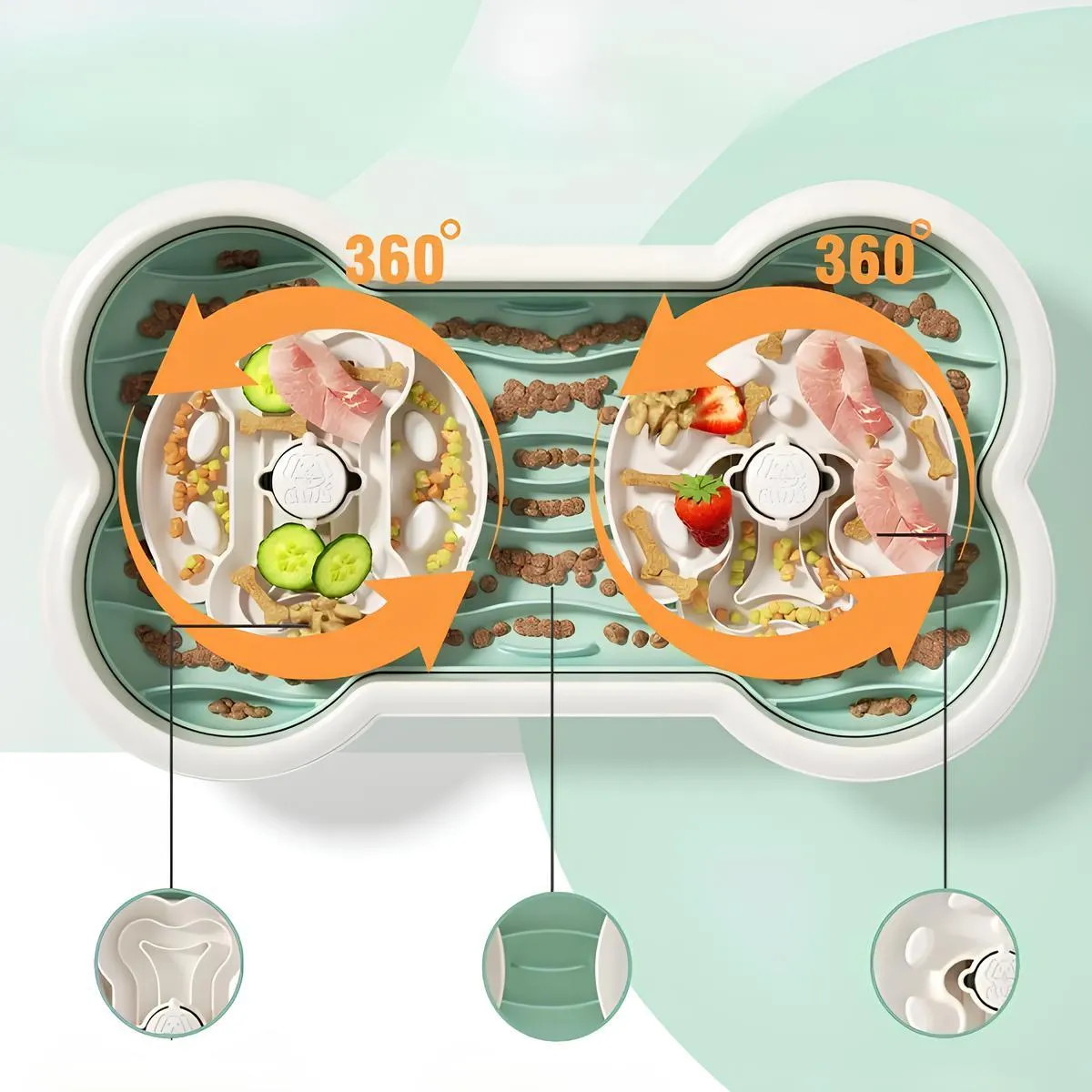 Миска для медленного кормления собак представляет собой интерактивное устройство, которое объединяет в себе элементы головоломки и кормушки. Она состоит из двух вращающихся тарелок и коврика с волнообразной текстурой для лизания, что делает процесс кормления увлекательным и стимулирующим. Чтобы добраться до корма, собаке нужно использовать свою смекалку и вращать тарелку, что значительно замедляет прием пищи. Такой подход не только помогает предотвратить быстрое поедание корма, что может привести к проблемам с пищеварением, но и активно развивает когнитивные способности животного.