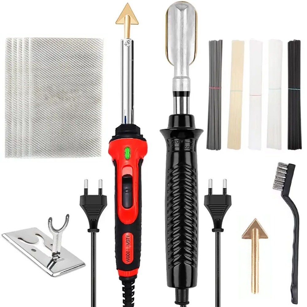Паяльный набор отлично подходит для ремонта различных изделий как в домашних условиях, так и в профессиональной среде. С его помощью можно легко восстановить бамперы, фары и другие изделия из термопласта. Набор оснащён двойной регулировкой температуры, термостойкой ручкой и теплоизоляционным дизайном, что обеспечивает безопасность и удобство работы.