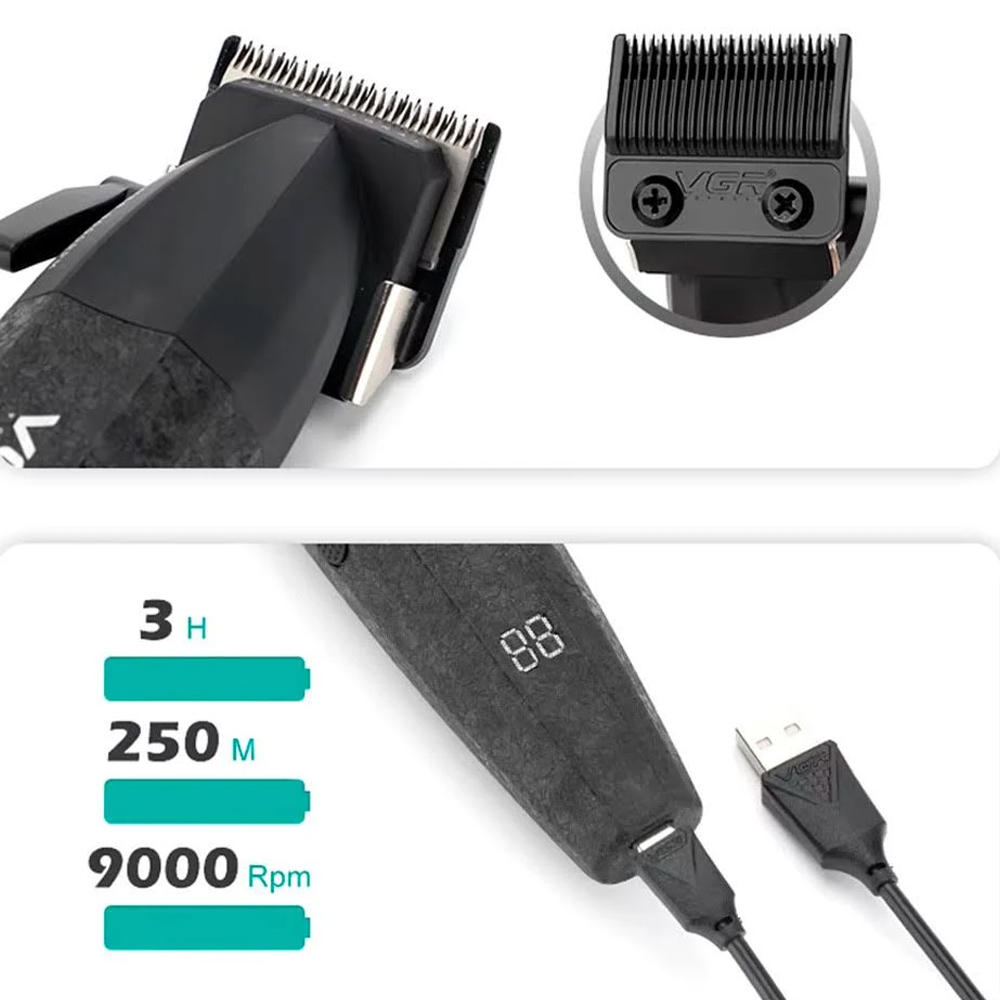 Набор для стрижки волос станет отличным выбором для тех, кто стремится к профессиональному уходу за волосами. Благодаря инновационным керамическим лезвиям с DLC-покрытием, машинка для стрижки vgr обеспечивает высокую долговечность и безупречное качество стрижки. Мощный двигатель, работающий на высокой скорости, позволяет быстро и эффективно стричь, избегая повреждений волос.