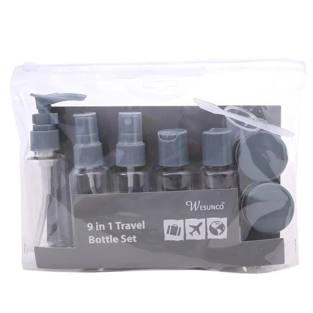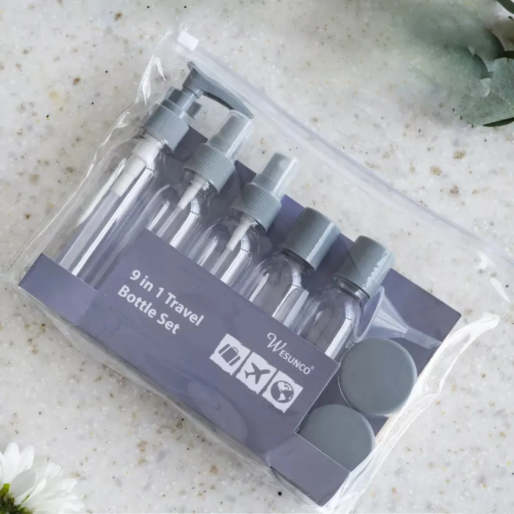 Дорожный набор емкостей Travel Bottle Set включает 9 практичных баночек и косметичку, обеспечивая идеальную организацию ваших любимых средств в поездках.