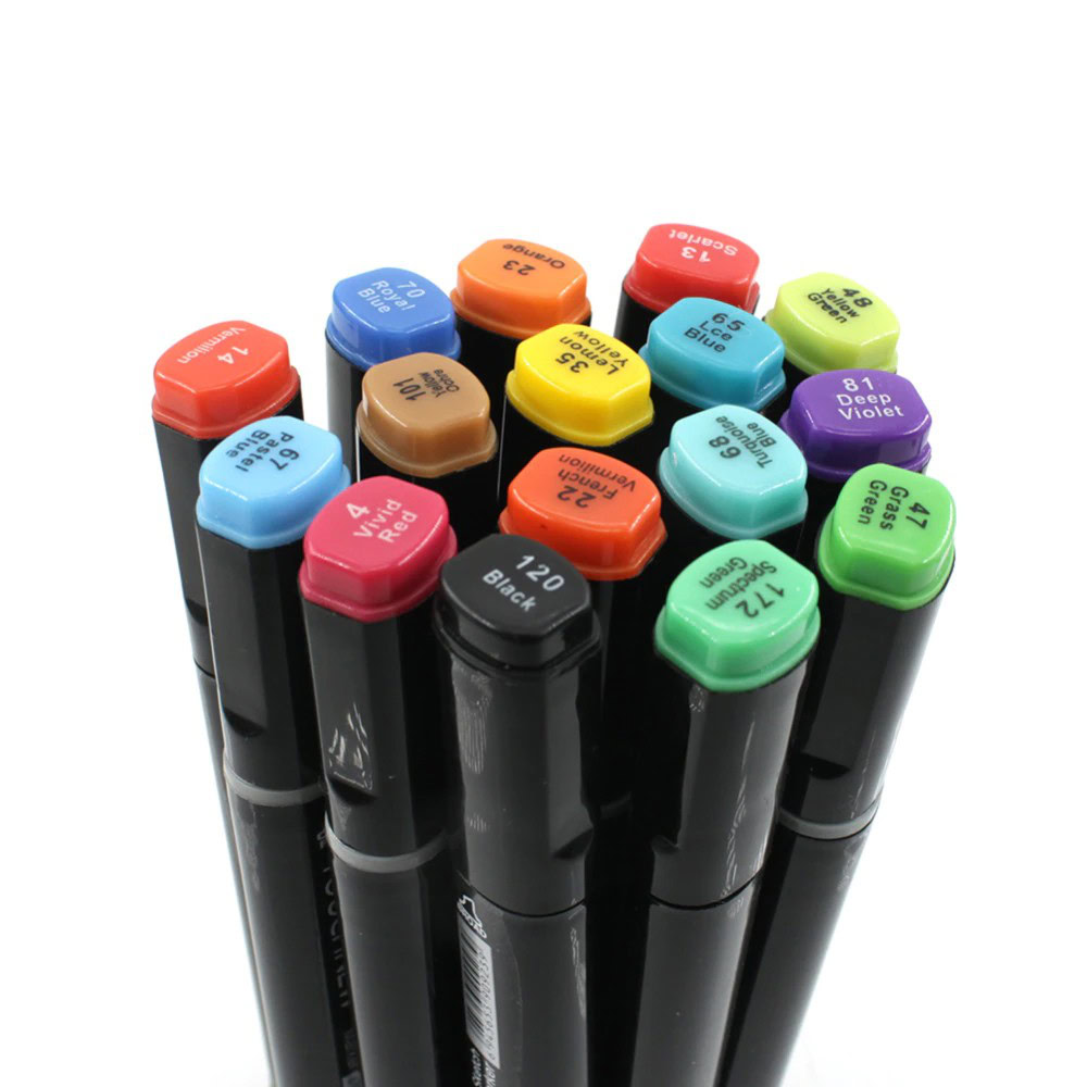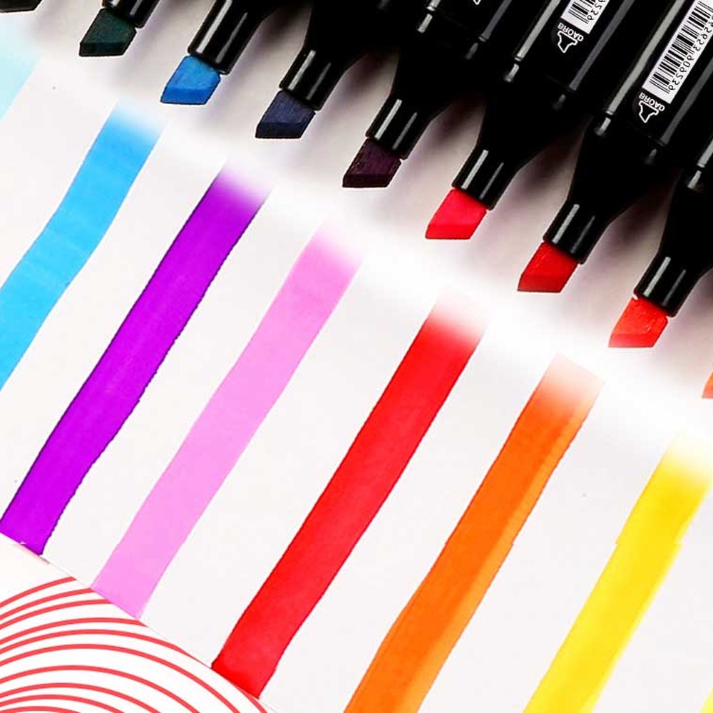 Благодаря спиртовой основе маркер довольно быстро высыхает. Цвета перманентных маркеров хорошо смешиваются между собой, переход оттенков плавный. Большой выбор скетч маркеры палитра цветов подойдет для рисования иллюстраций, комиксов, пейзажа, а также набор для рисования может быть интересным подарком для ребенка.