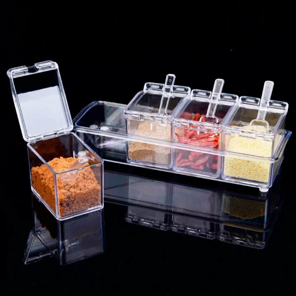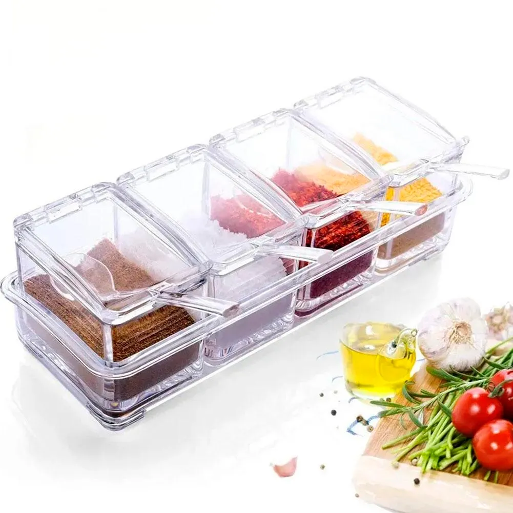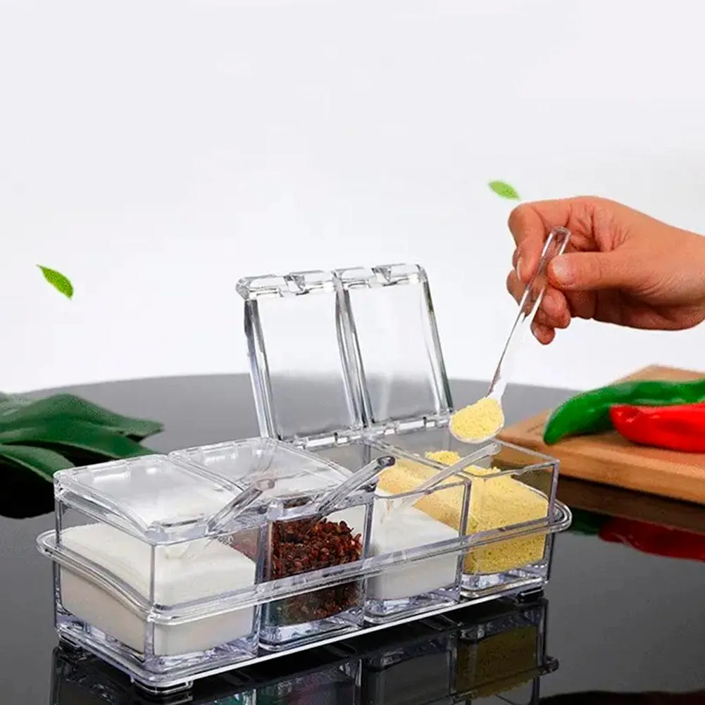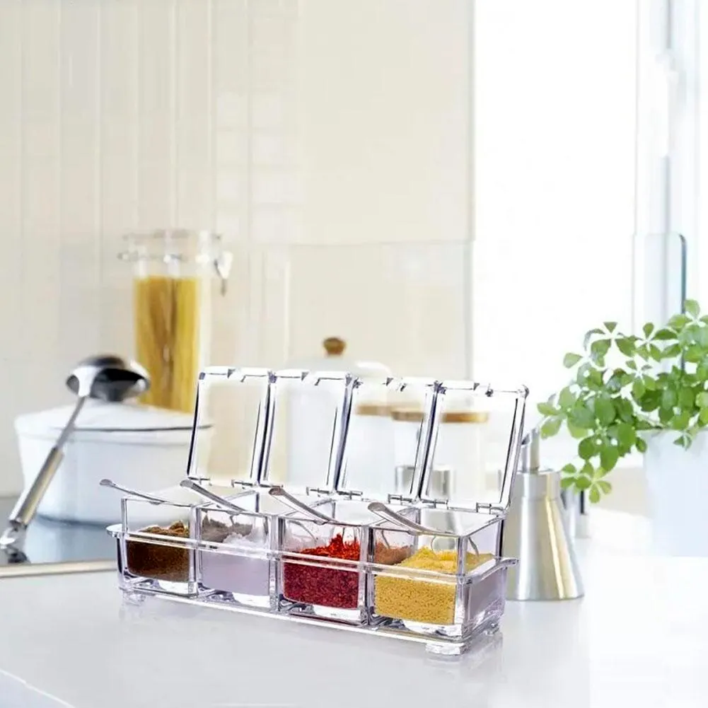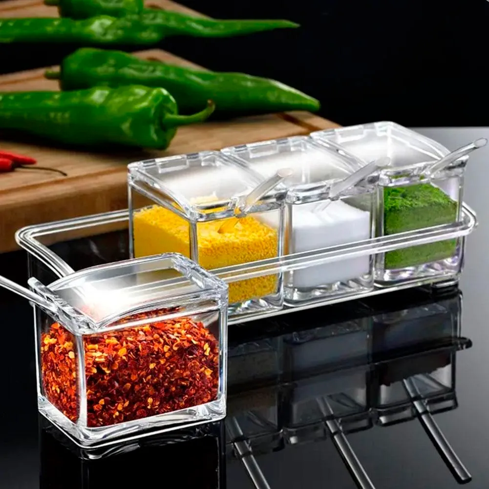 Набор емкостей для хранения специй на 4 отделения Crystal / Кухонный набор органайзер для специй