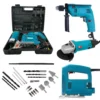 Представляем вашему вниманию универсальный набор электроинструментов 3 в 1, который станет вашим надежным спутником в любых проектах! Этот набор включает в себя дрель, угловую шлифовальную машину (болгарку) и лобзик – все, что необходимо для выполнения широкого спектра задач по дому, в гараже или на даче. Инструменты изготовлены из высококачественных материалов, что гарантирует их долговечность и устойчивость к интенсивной эксплуатации.