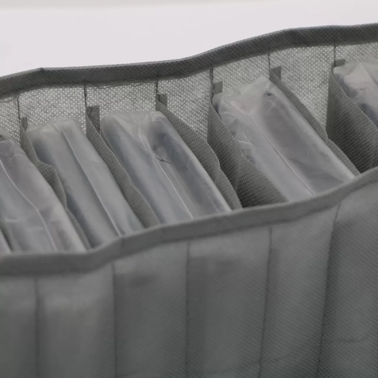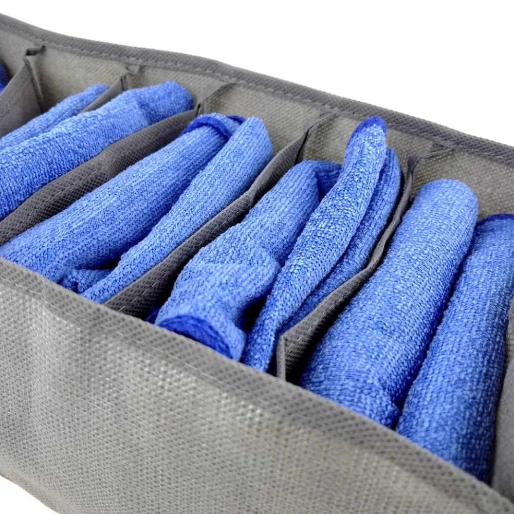 Органайзеры могут легко складываться и разворачиваться, что делает их удобными в использовании и хранении. Когда они не используются, вы можете легко сложить их и убрать в шкаф или ящик, экономя ценное пространство. Каждый органайзер разделен на несколько секций, что позволяет держать вещи раздельно и предотвращает их перемешивание. Ваши бюстгальтеры сохранят свою форму, носки и трусики будут аккуратно уложены в отдельные отделения.