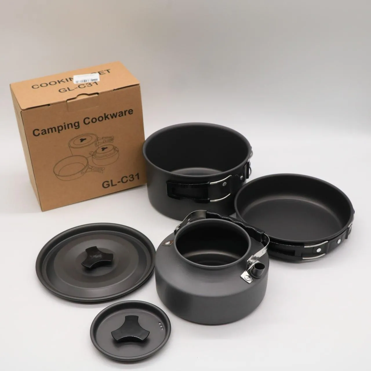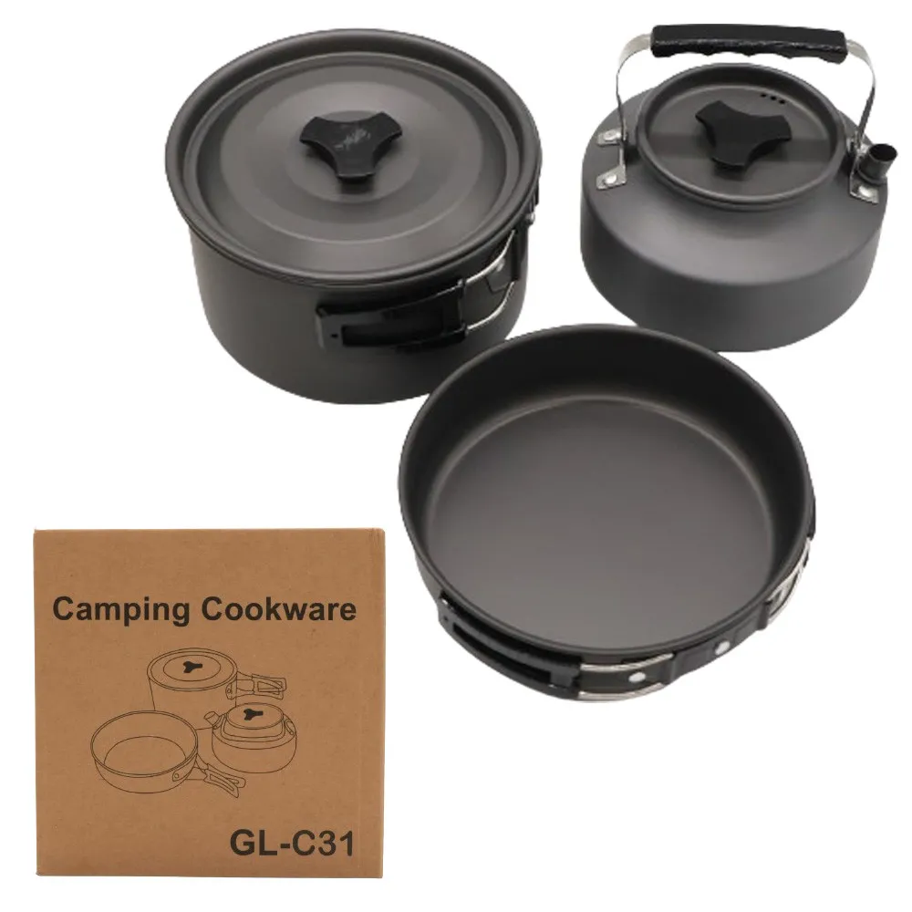 Набор туристической посуды (кастрюля, сковородка, чайник) GL-C31 / Посуда для кемпинга / Походный набор посуды