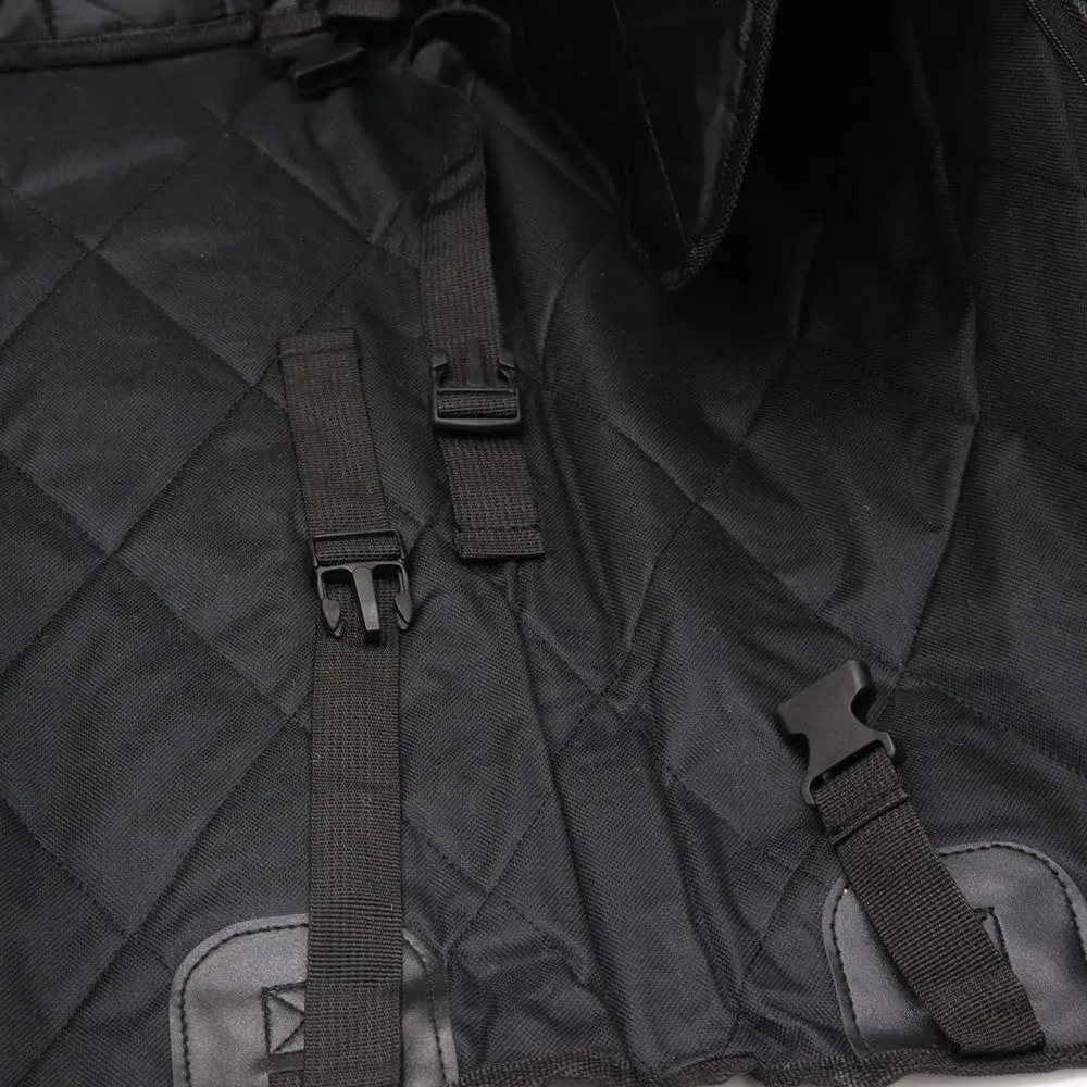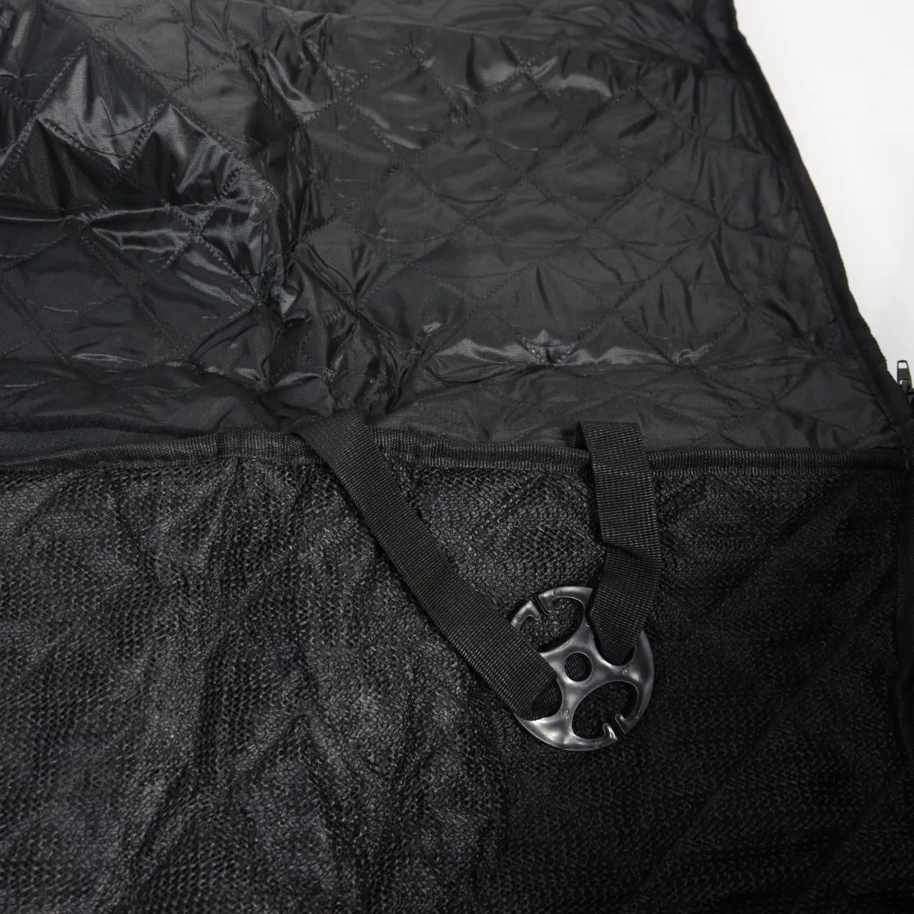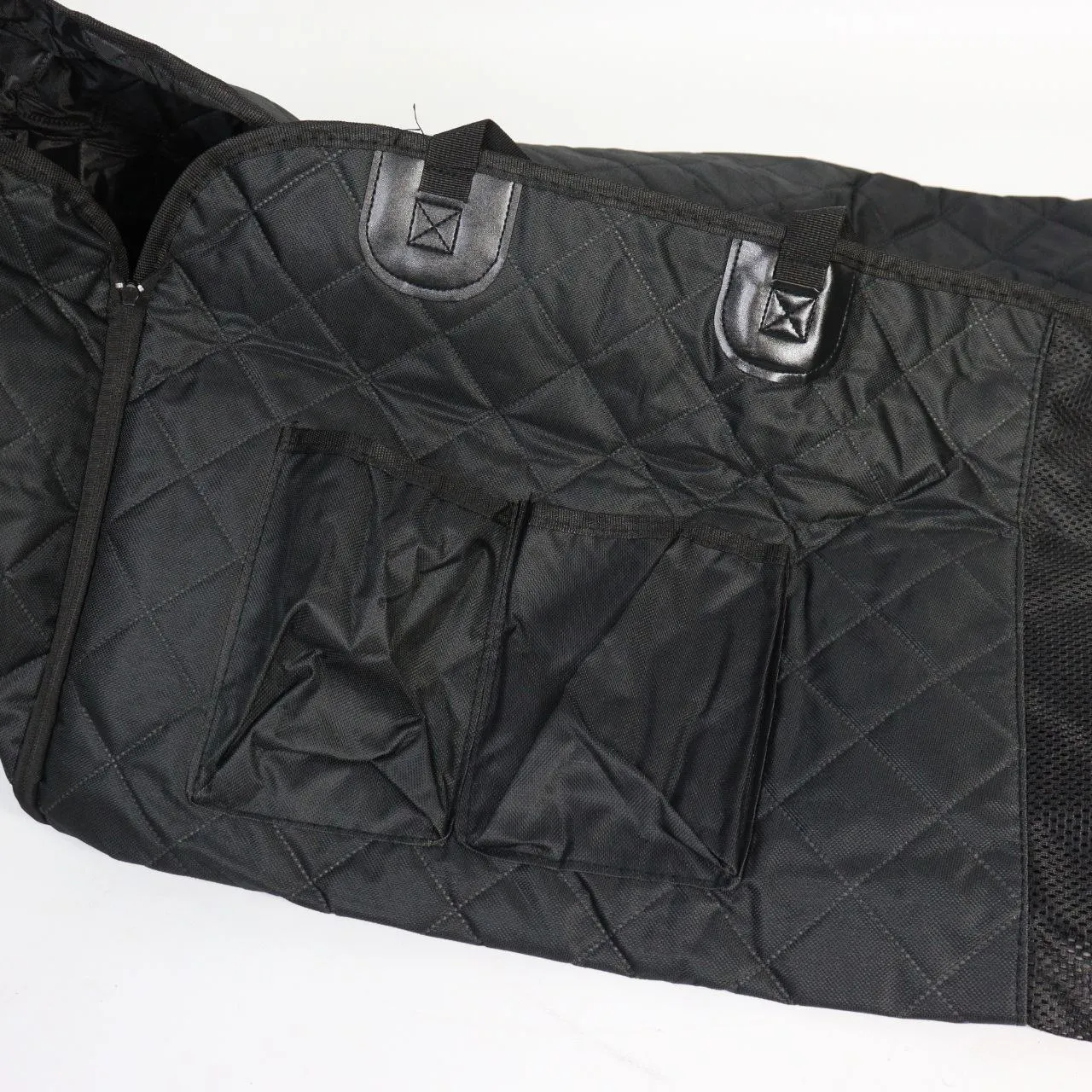 Боковые молнии закрывают боковые части, предотвращая царапины на дверях автомобиля. Специальные отверстия на липучках позволяют использовать штатные ремни безопасности. Этот универсальный органайзер подходит не только для автомобиля, но и для использования на природе в качестве удобной подстилки.