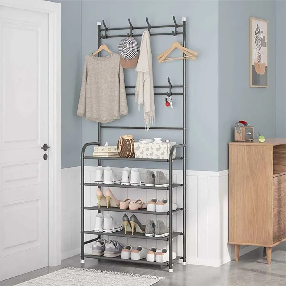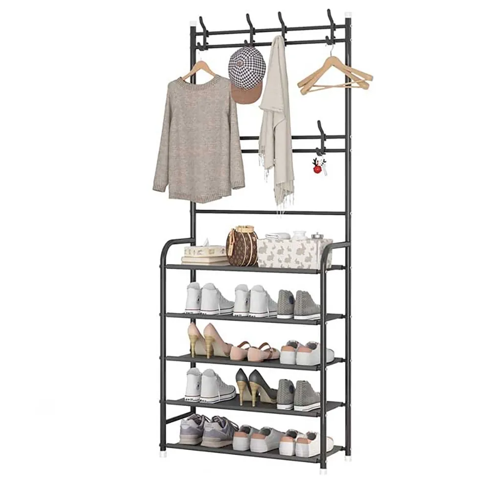 Напольная вешалка для одежды и обуви на 5 полок 165х59х29,5см / Стойка для одежды с полкой для обуви