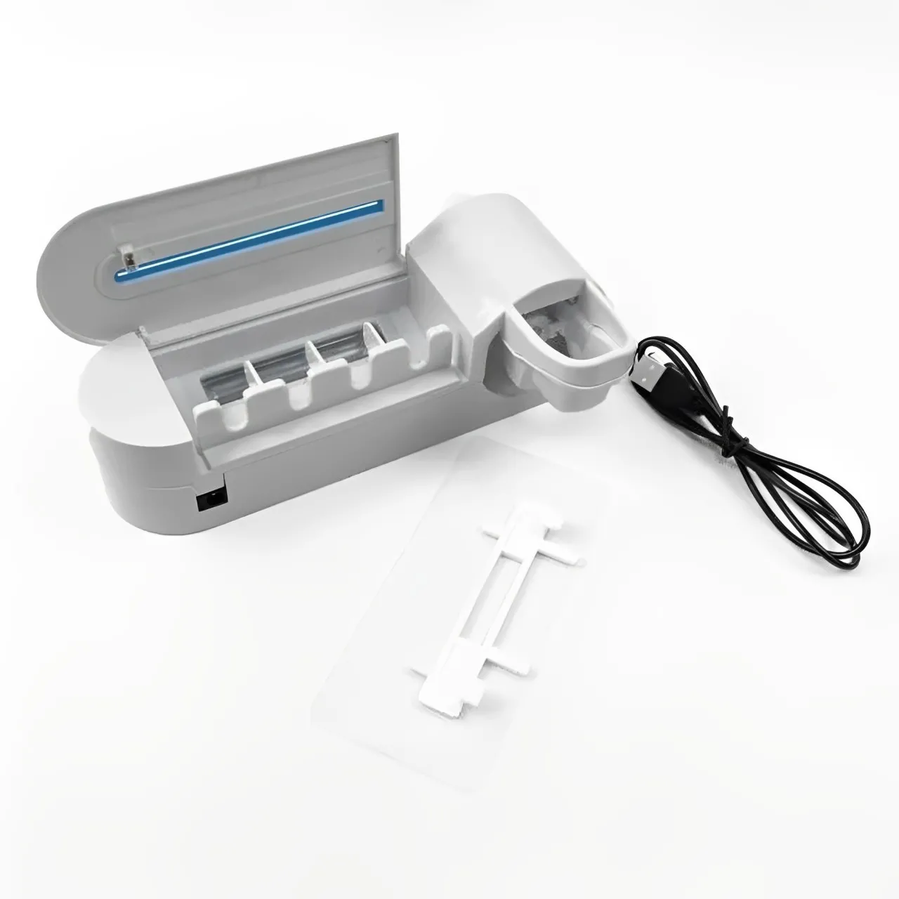 Диспенсер для зубной пасты с уникальным стерилизатором щеток. Гарантия чистоты и безопасности для всей семьи каждый день!