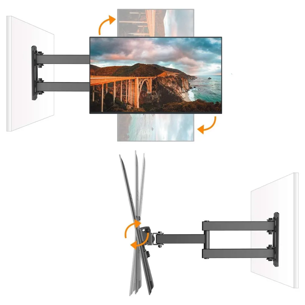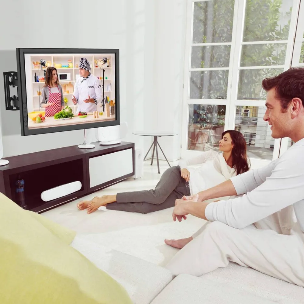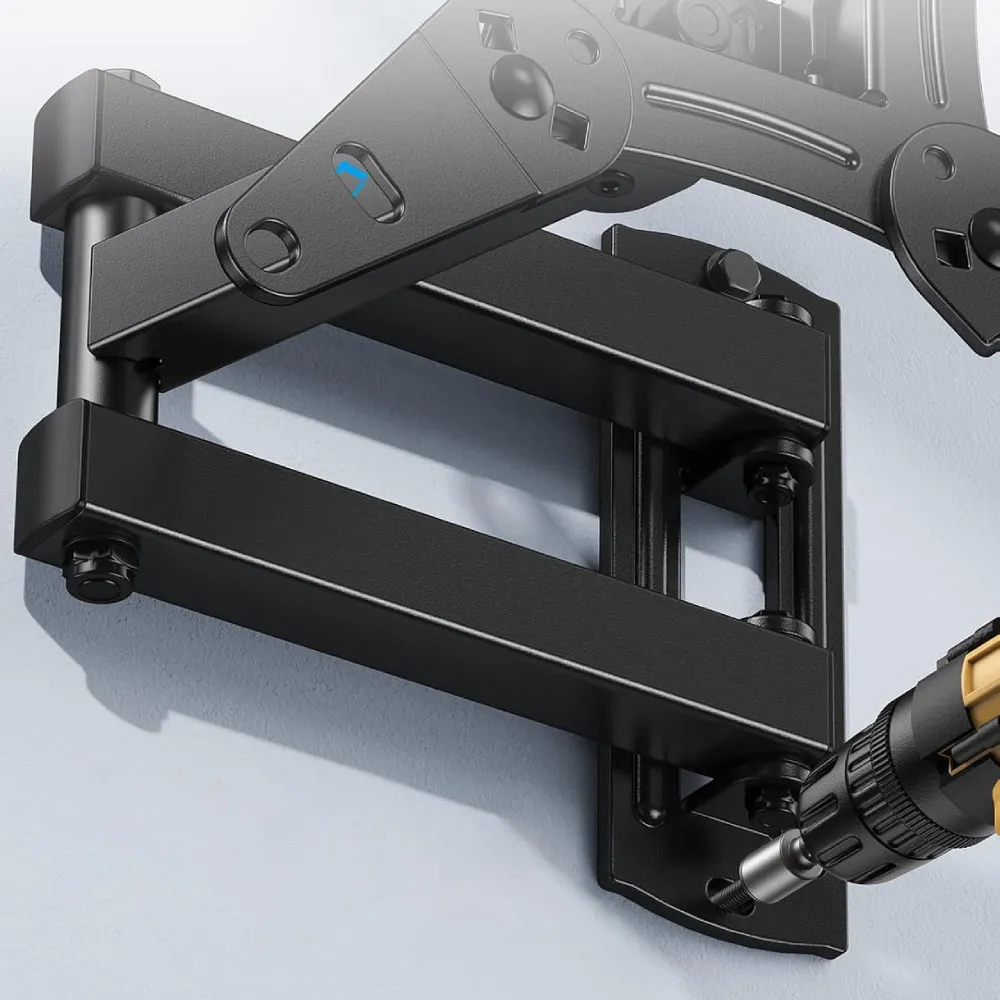 Крепление для телевизора на стену имеет возможность регулировки угла наклона, что позволяет легко настроить удобный угол обзора. В комплекте с кронштейном идёт полный набор крепежных элементов, что значительно упрощает установку и делает её доступной для самостоятельного монтажа.