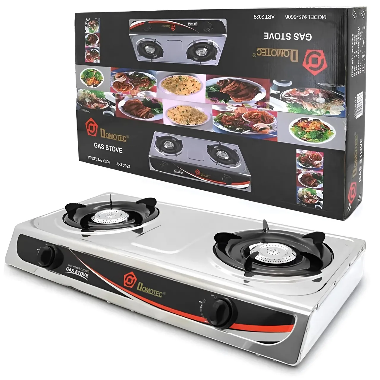 Газовая настольная плита Domotec MS-6606 с двумя конфорками идеально подходит для небольших кухонь с ограниченным пространством рабочей поверхности!