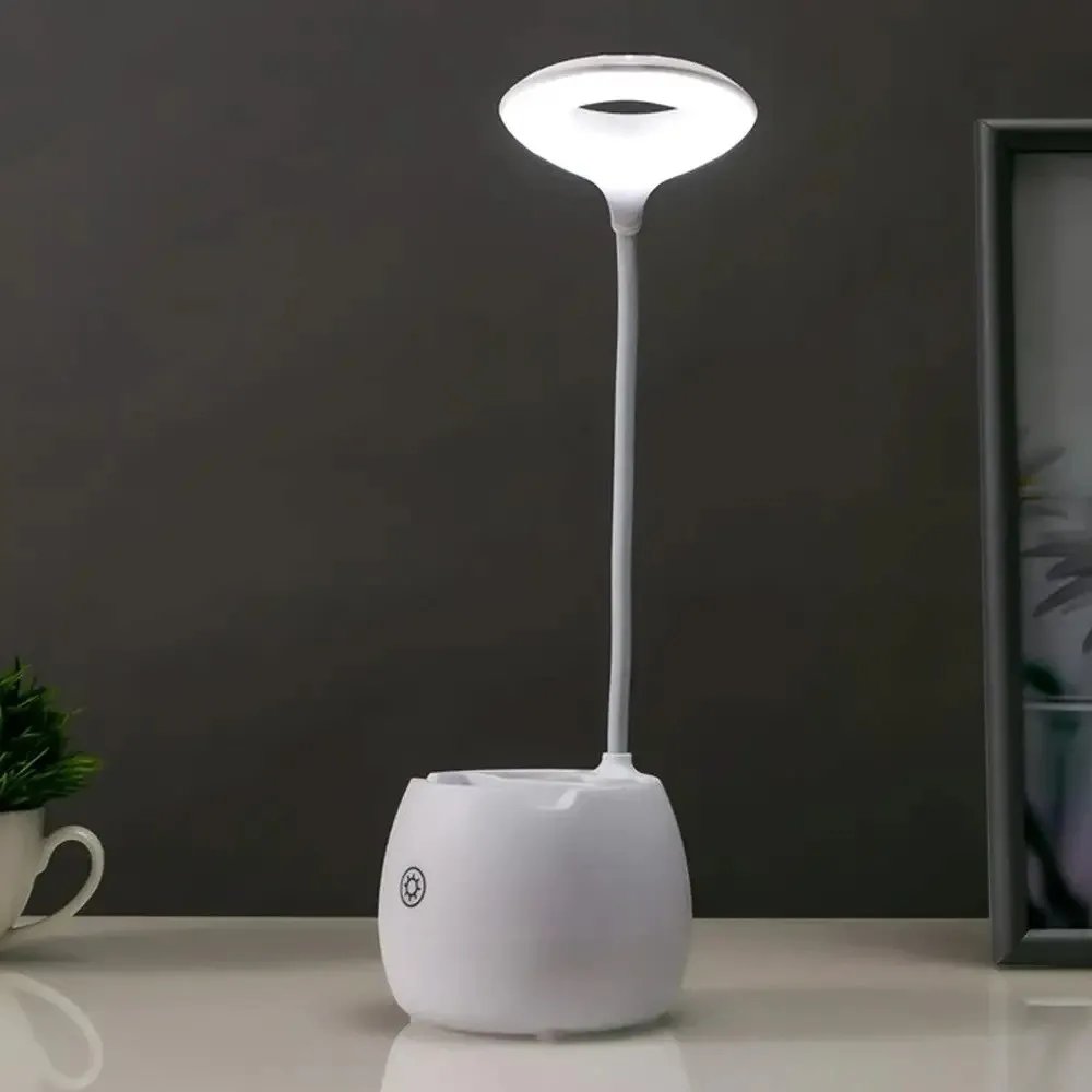Светодиодная технология гарантирует высокую энергоэффективность и яркое освещение при минимальном потреблении энергии. Регулировка яркости позволяет создать комфортную атмосферу для работы или отдыха. Гибкая ножка обеспечивает индивидуальную настройку угла освещения, а встроенный органайзер – удобное хранение канцелярских принадлежностей и телефона.