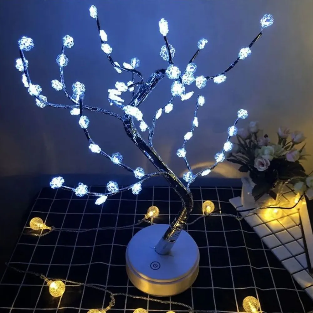 Настольный светильник "Дерево Бонсай" 50см, от USB, Холодный белый / Светодиодное дерево / Лампа ночник