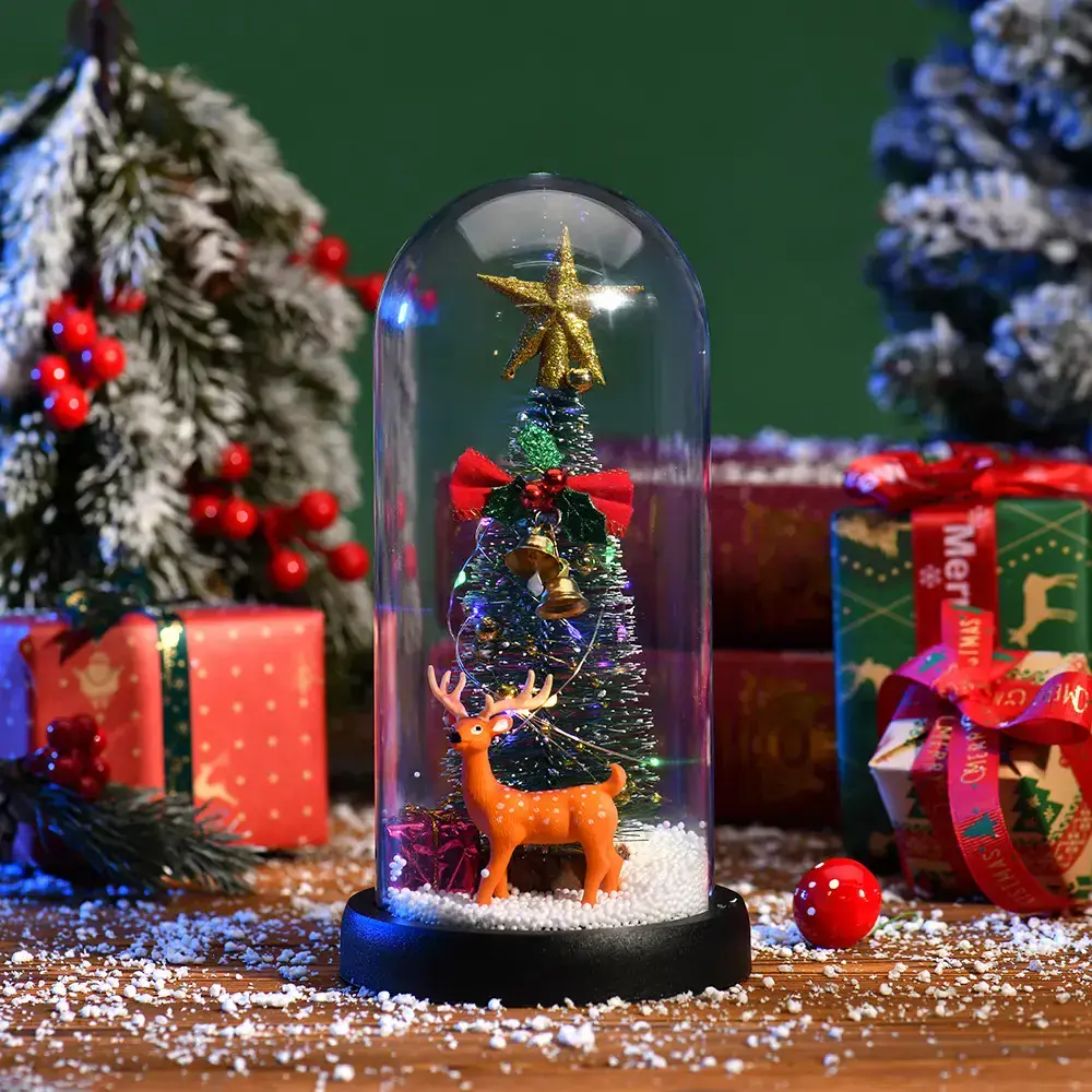 Новогодний светильник “Ёлочка в колбе с оленем” — это очаровательное украшение, которое добавит волшебства и уюта в ваш дом, а также станет прекрасным подарком для близких.