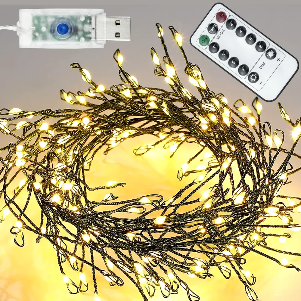 Создайте уют и волшебство в любом месте с гирляндой на 300 теплых огоньков, питающейся от USB и легко украшающей ваш дом или сад!