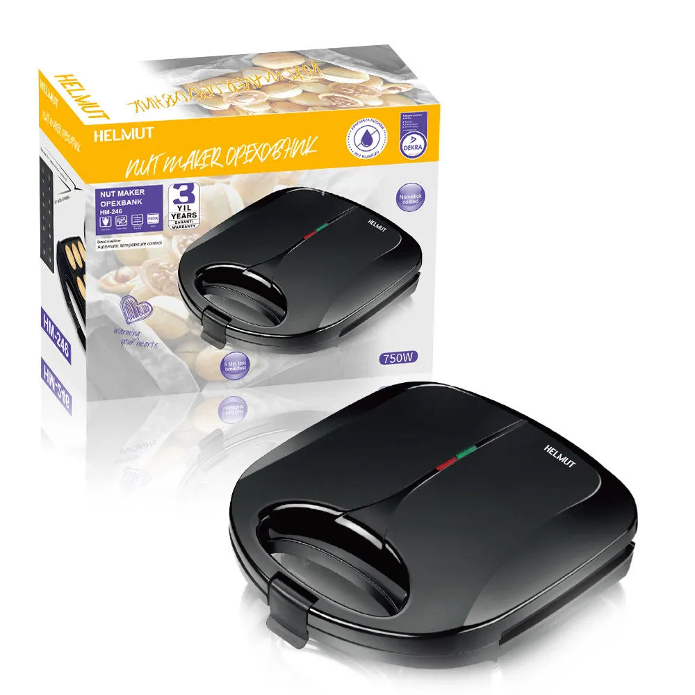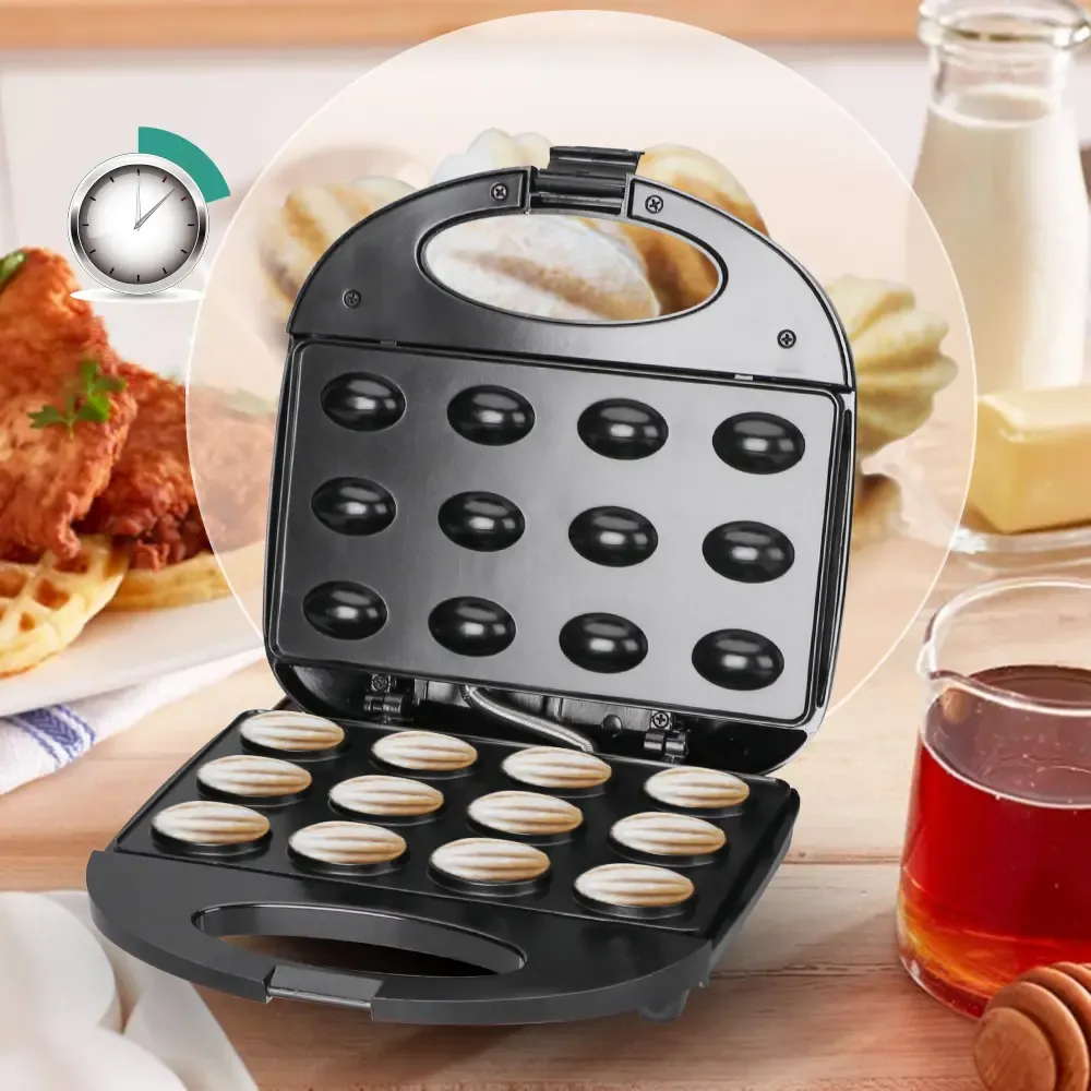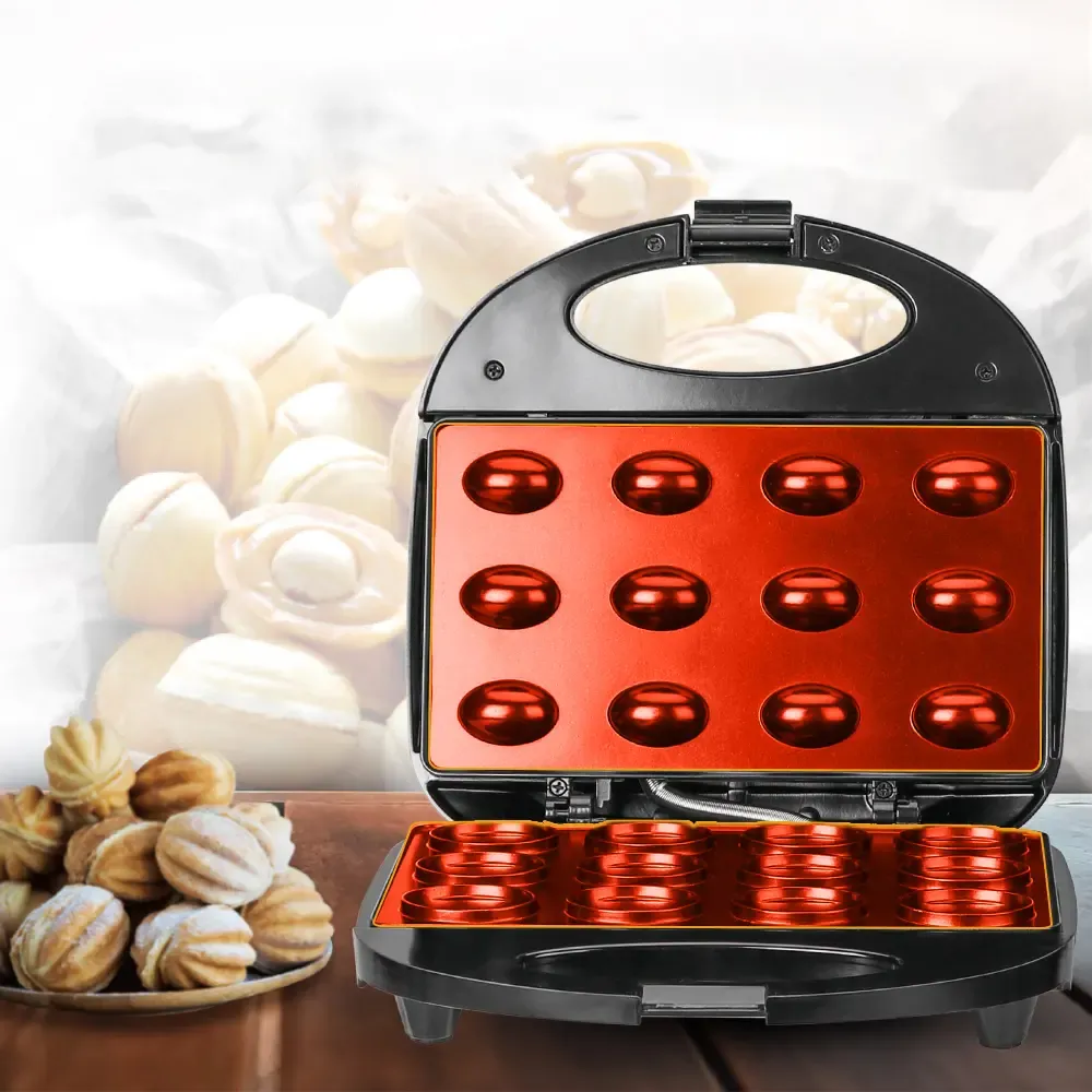 Антипригарное покрытие форм предотвращает пригорание теста и обеспечивает легкое извлечение готовых изделий, сохраняя их безупречную форму. Быстрый нагрев значительно сокращает время приготовления, позволяя насладиться вкусными орешками всего за несколько минут.