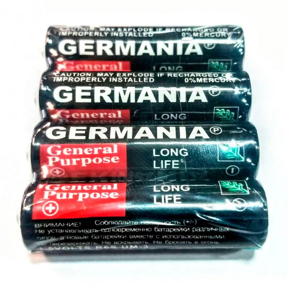 Пальчиковые солевые батарейки Germania – оптимальное сочетание цены и качества для ваших устройств! Идеально подходят для фонариков, игрушек, цифровых фотоаппаратов и пультов ДУ.