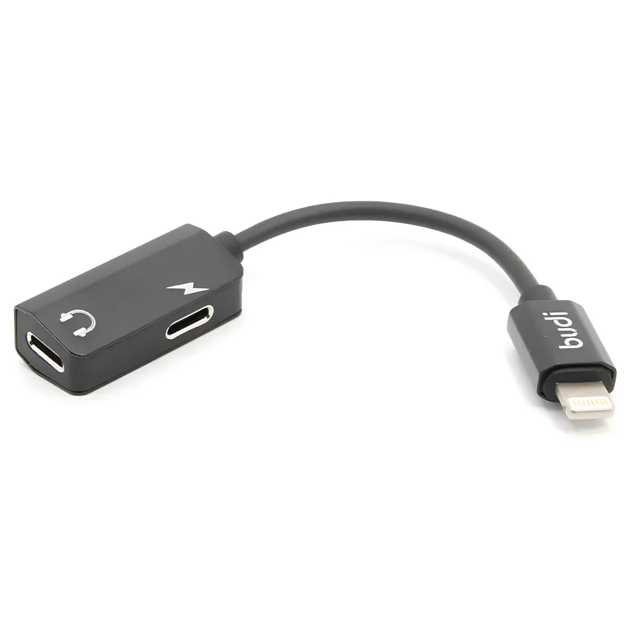 Переходник для наушников и зарядки (Lightning – 2хLightning) 15см, Budi / Адаптер для наушников айфон